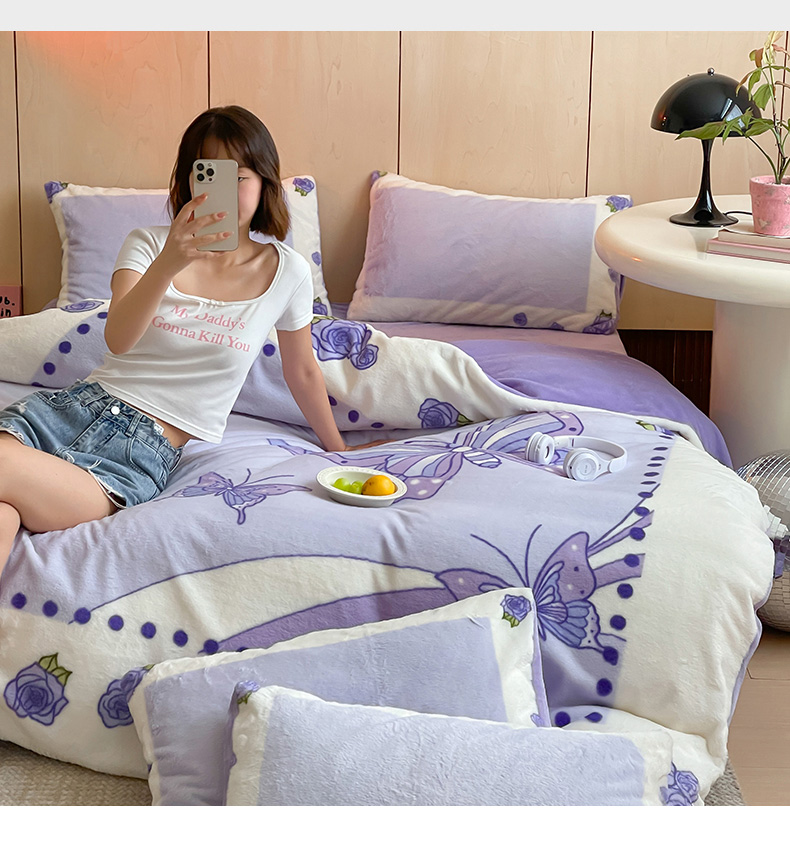 安哆啦家纺 2024新款兔毛绒大版卡通牛奶绒兔兔绒印花四件套 姿花蝶