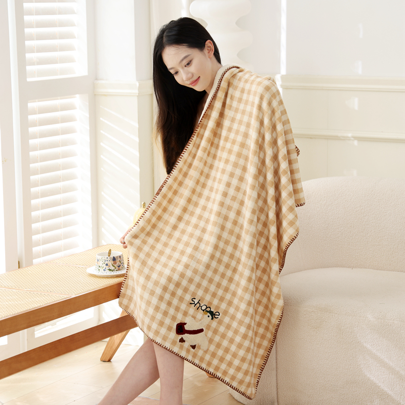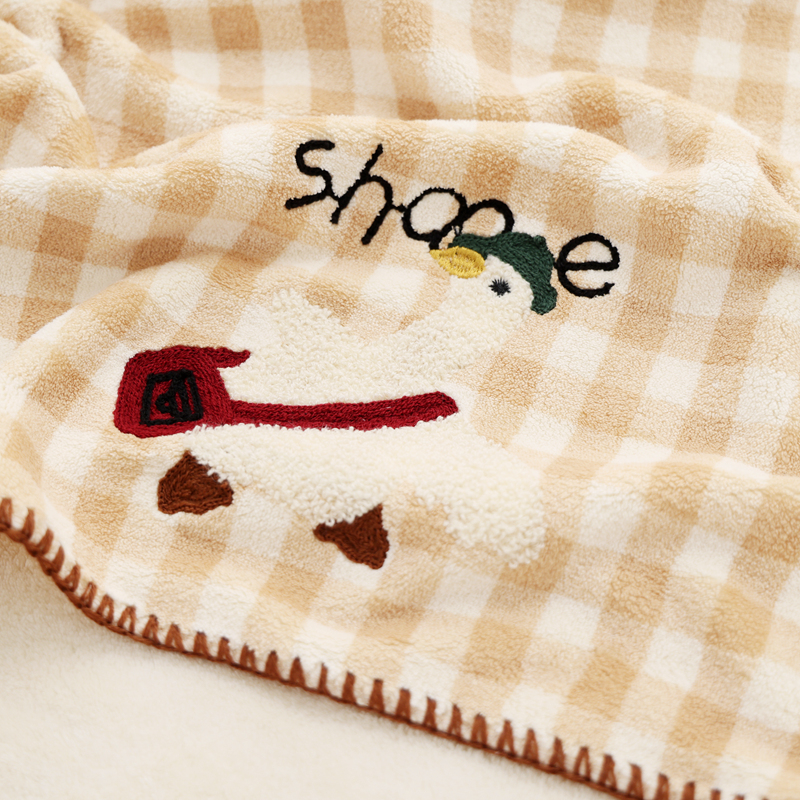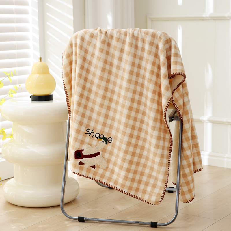当前位置: 91家纺网 > 商品网购 > 居家日用 > 毛巾/浴巾/浴袍 > 浴巾 > 朴尔家纺-毛巾被 2024新款毛巾绣勾边小格快乐鸭AB版珊瑚绒速吸速干毛巾浴巾 格子快乐鸭-卡其浴巾