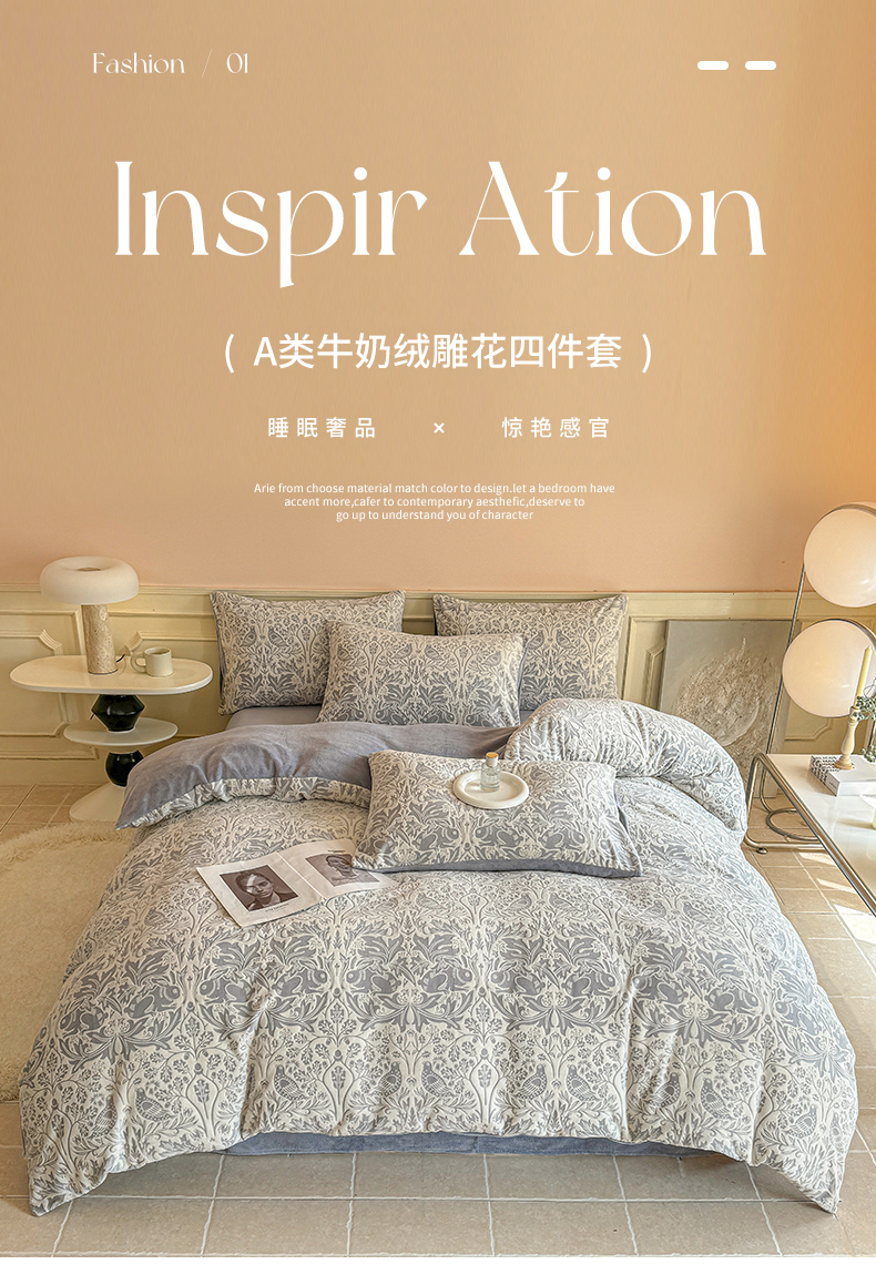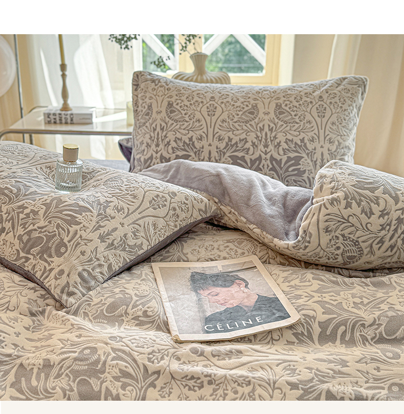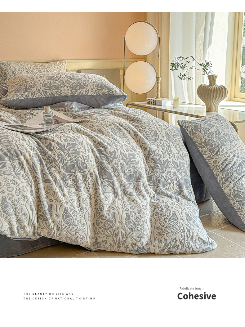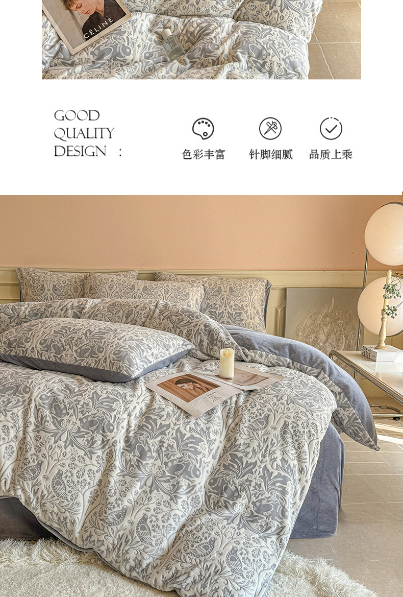 (总)大境 2025秋冬新款A类230克牛奶绒雕花烂花绒宝宝绒床笠款床单款四件套,蝶恋花语,花恋,浪漫花香 粉,浪漫花香 绿,叶之恋,郁金香粉,月光森林