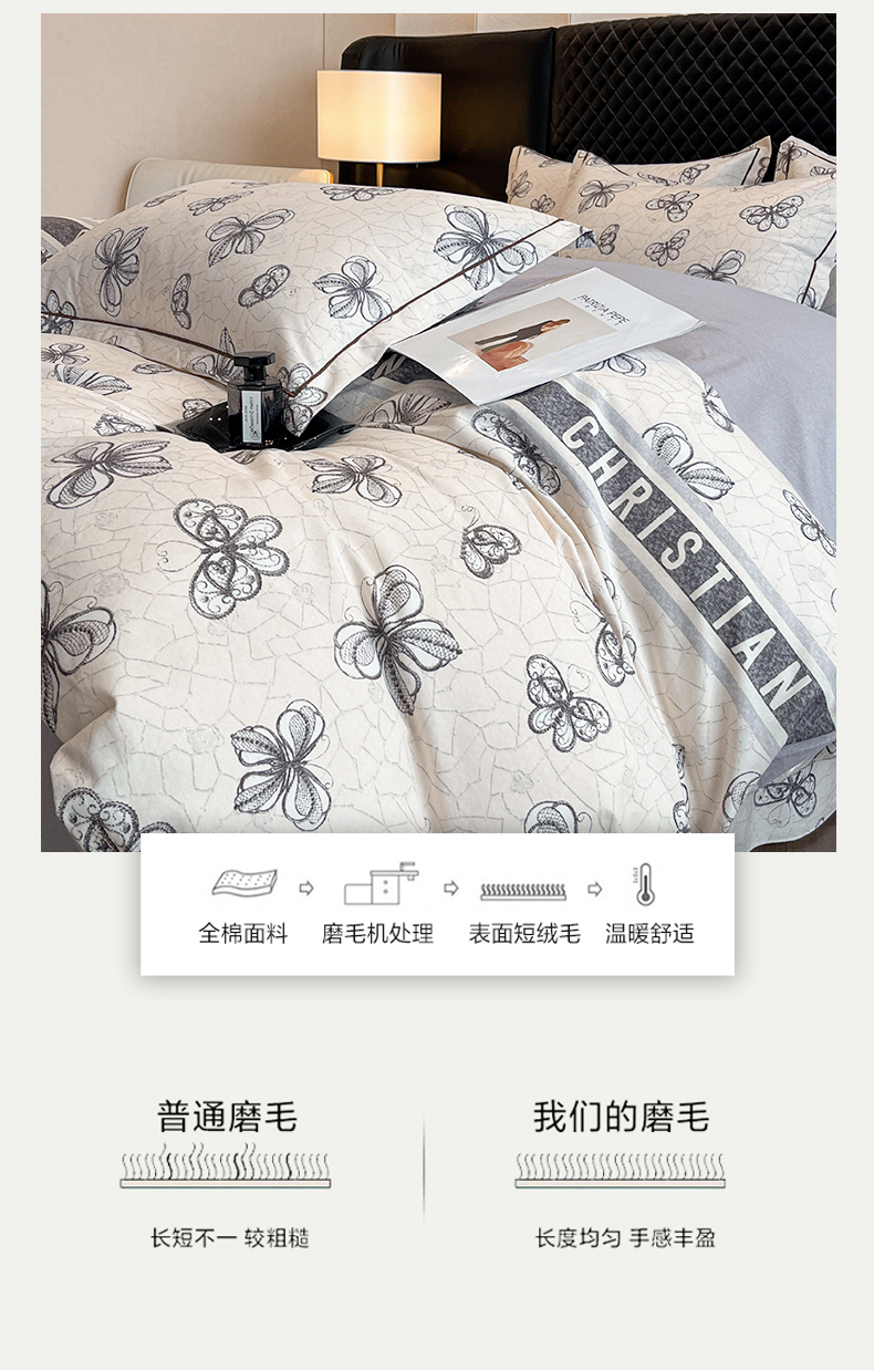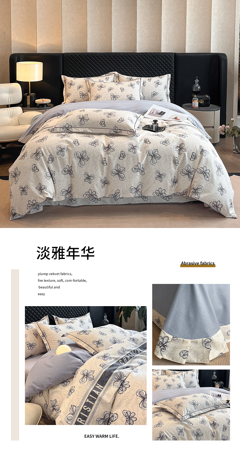 当前位置: 91家纺网 > 商品网购 > 床品套件 > 四件套 > 普通磨毛四件套 > 大柏树 2025新款A类全棉磨毛印花四件套 淡雅年华