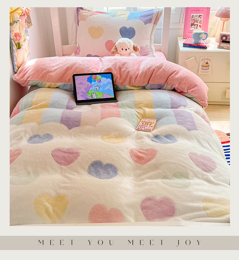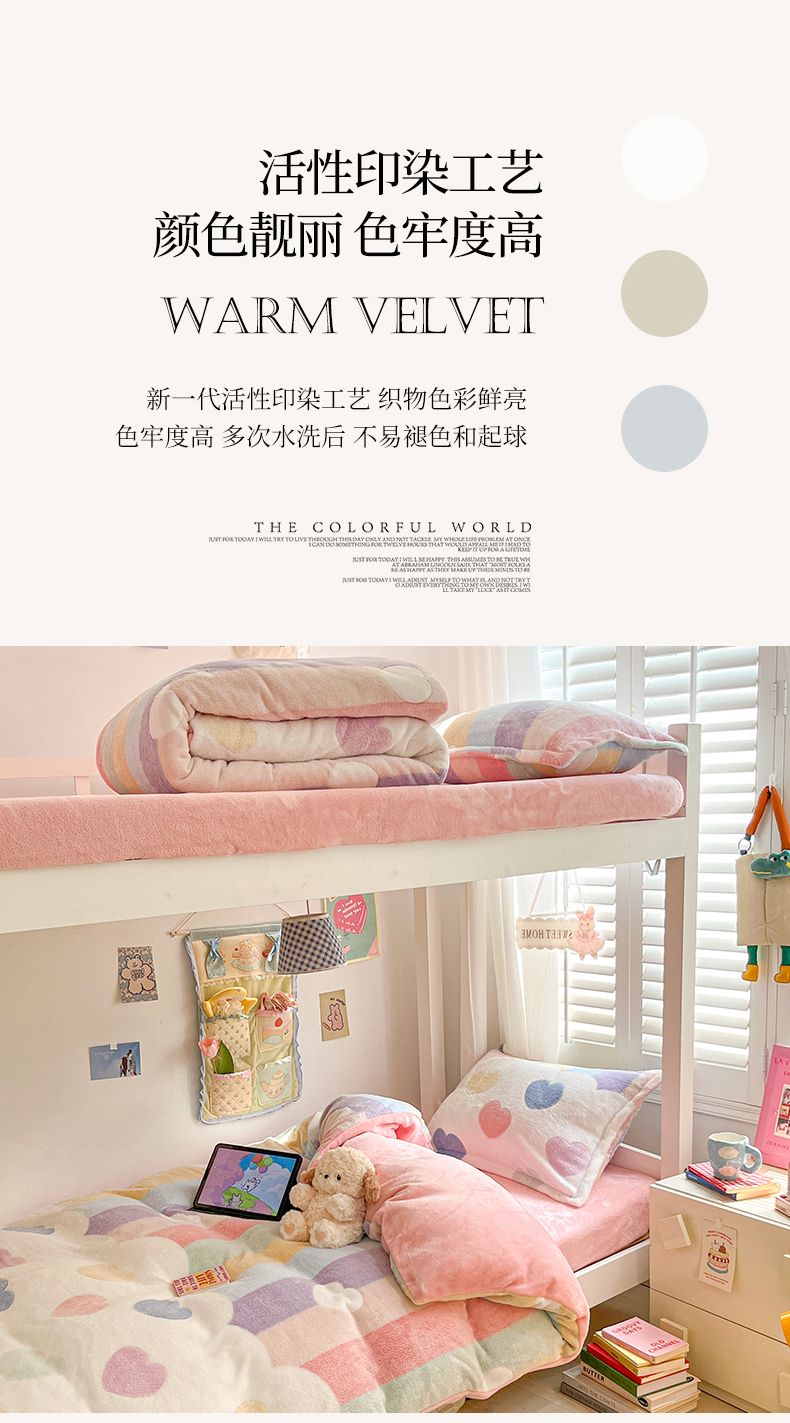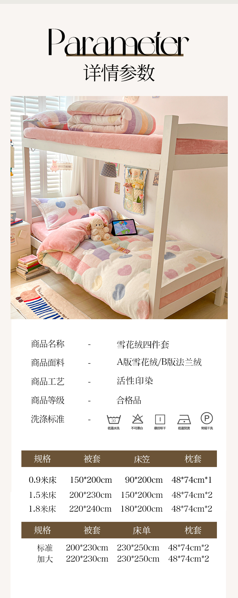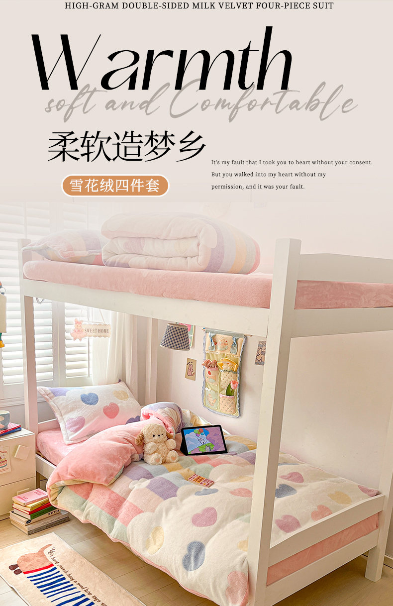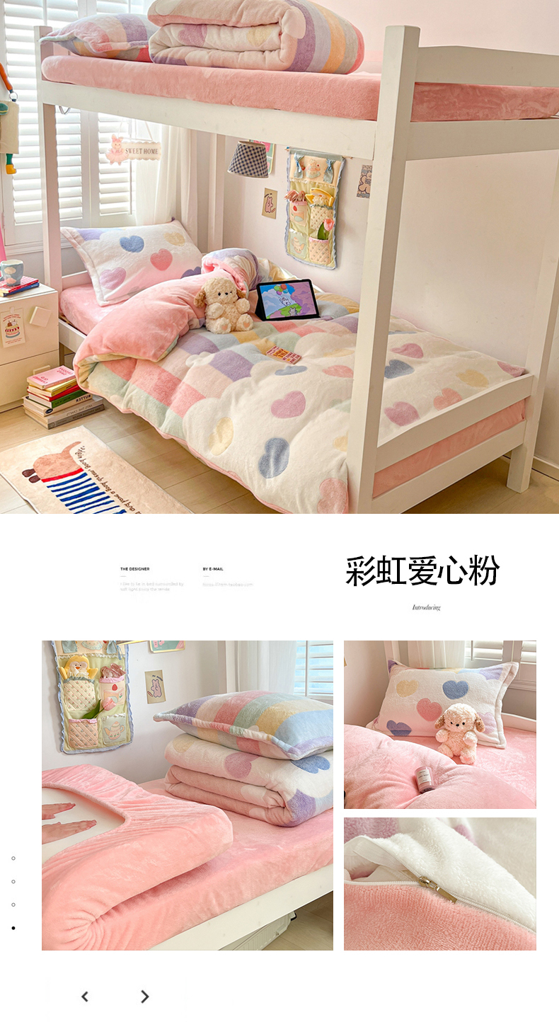 当前位置: 91家纺网 > 商品网购 > 床品套件 > 三件套 > 川悦生活 2024新款立体雪花绒宿舍床笠款三件套四件套 彩虹爱心粉