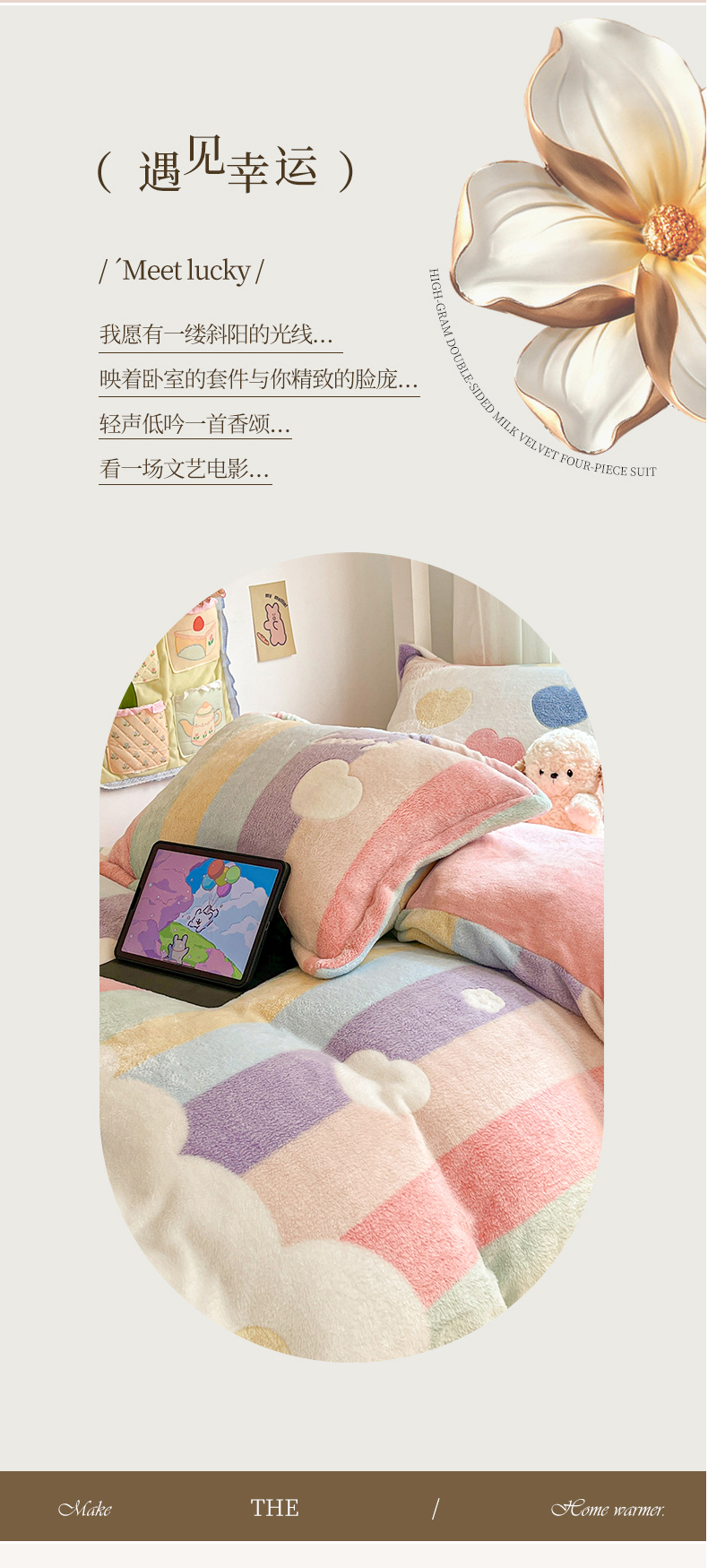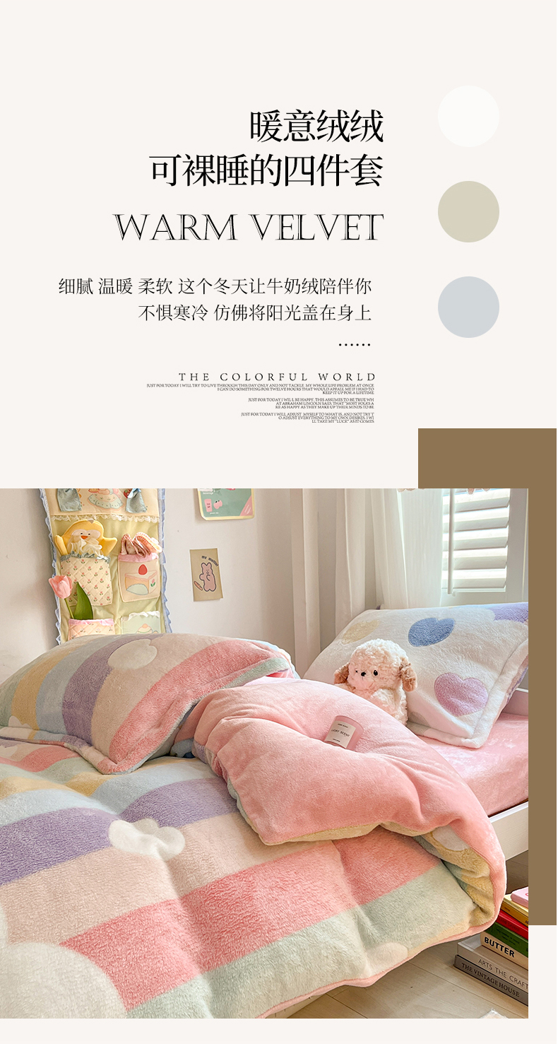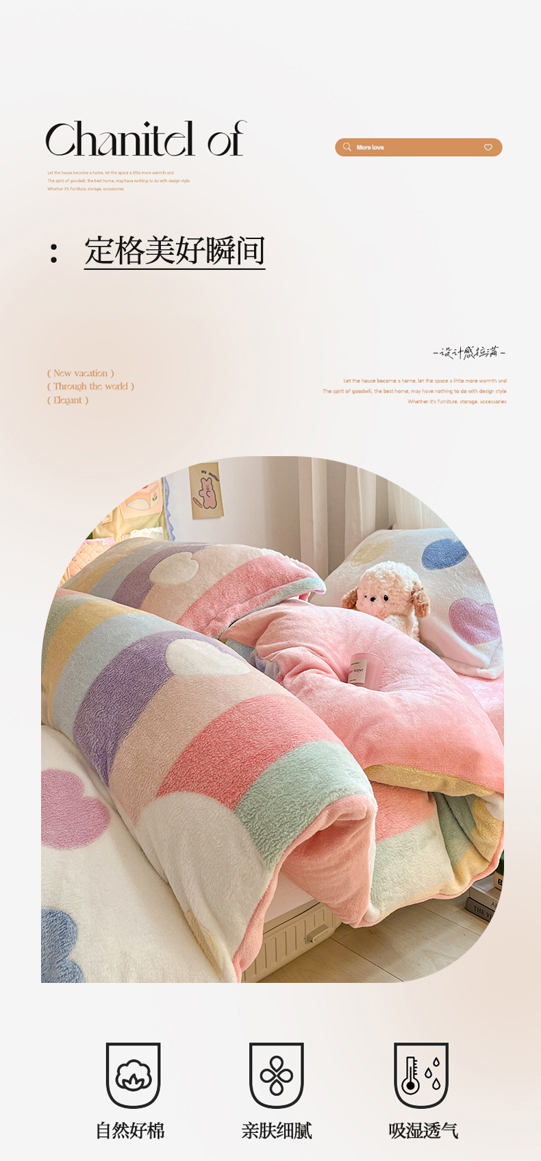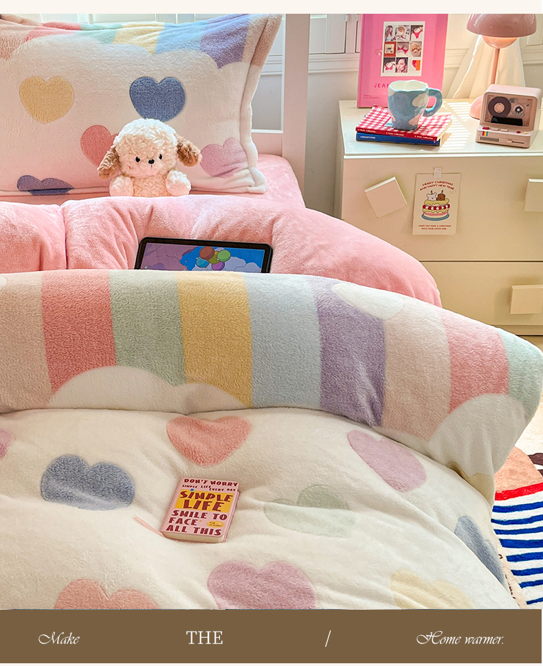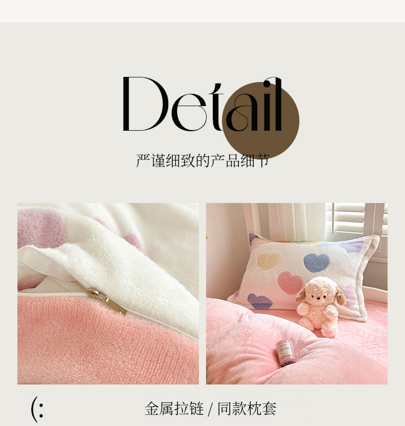 当前位置: 91家纺网 > 商品网购 > 床品套件 > 三件套 > 川悦生活 2024新款立体雪花绒宿舍床笠款三件套四件套 彩虹爱心粉