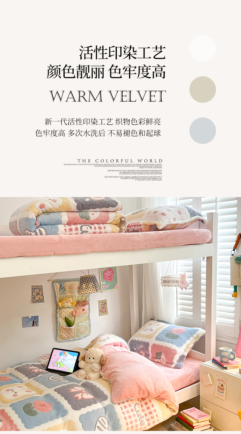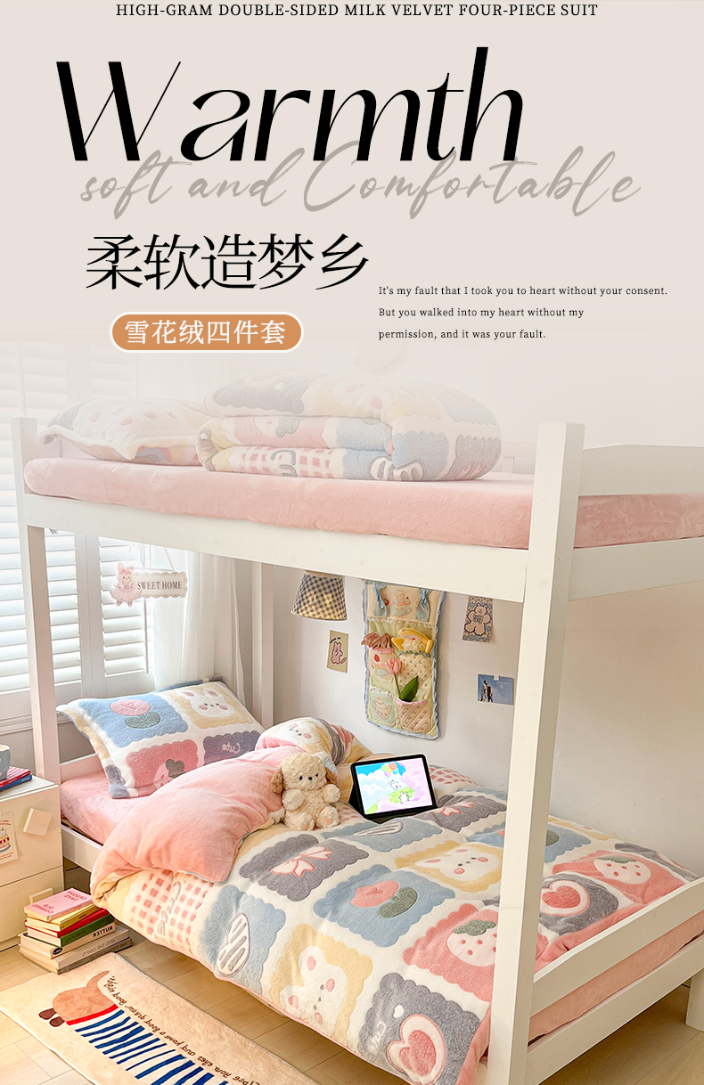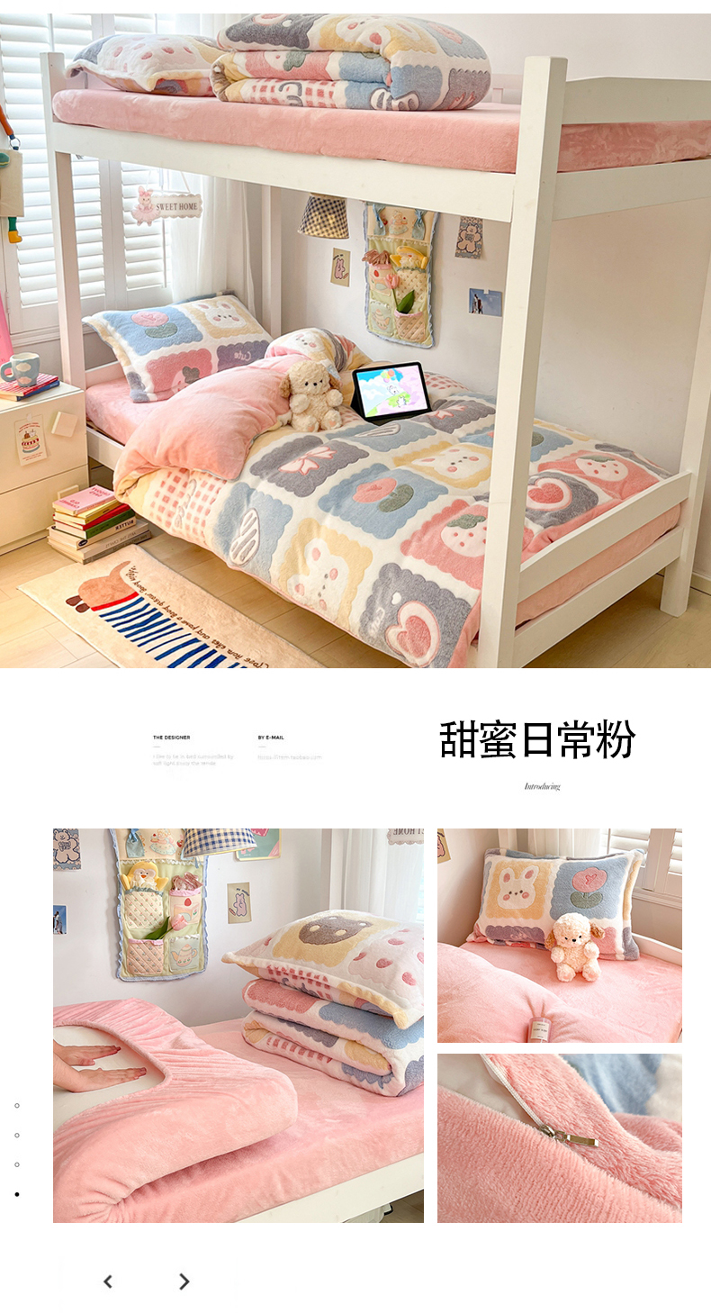 当前位置: 91家纺网 > 商品网购 > 床品套件 > 三件套 > 川悦生活 2024新款立体雪花绒宿舍床笠款三件套四件套 甜蜜日常粉