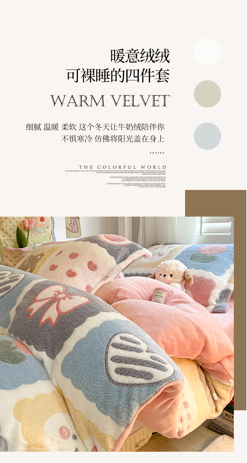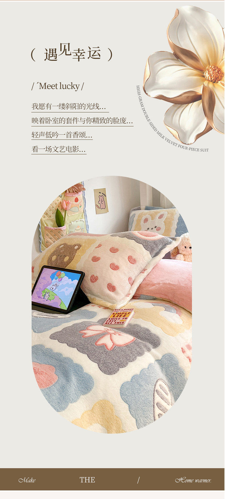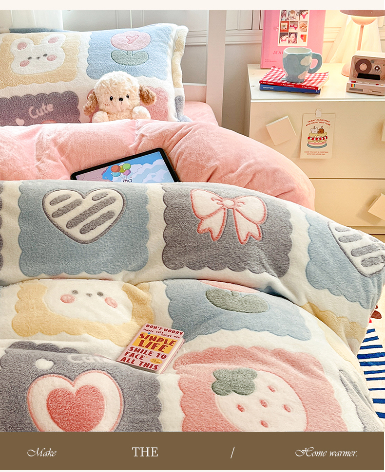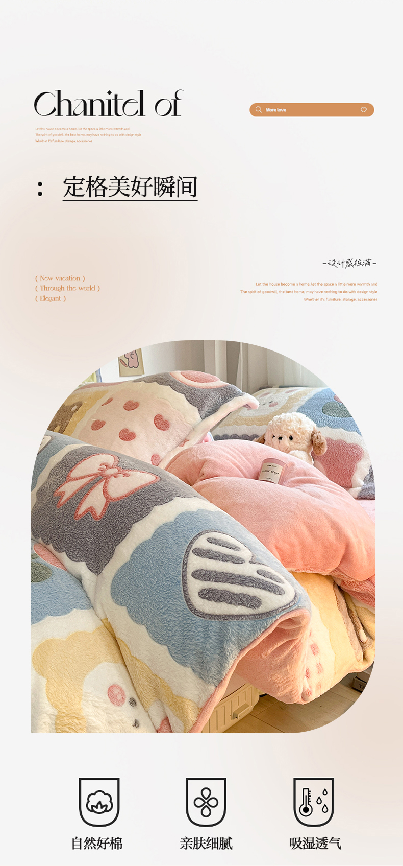 当前位置: 91家纺网 > 商品网购 > 床品套件 > 三件套 > 川悦生活 2024新款立体雪花绒宿舍床笠款三件套四件套 甜蜜日常粉