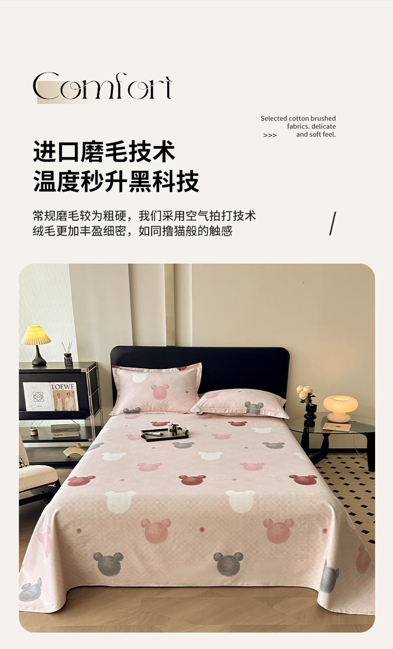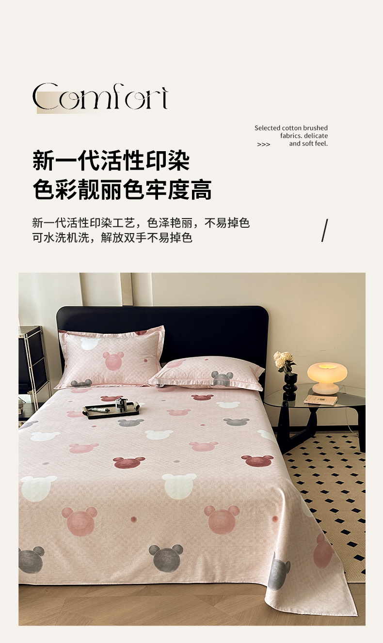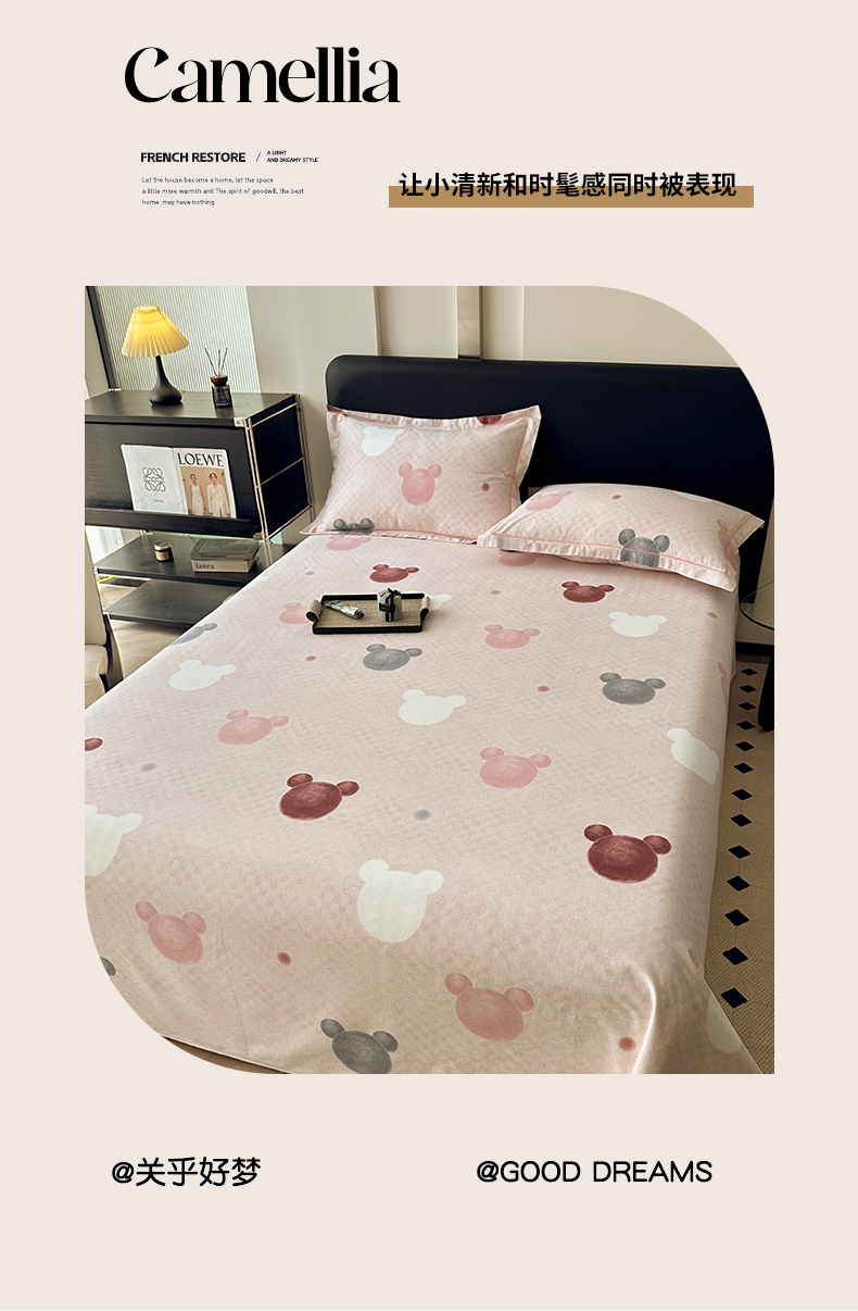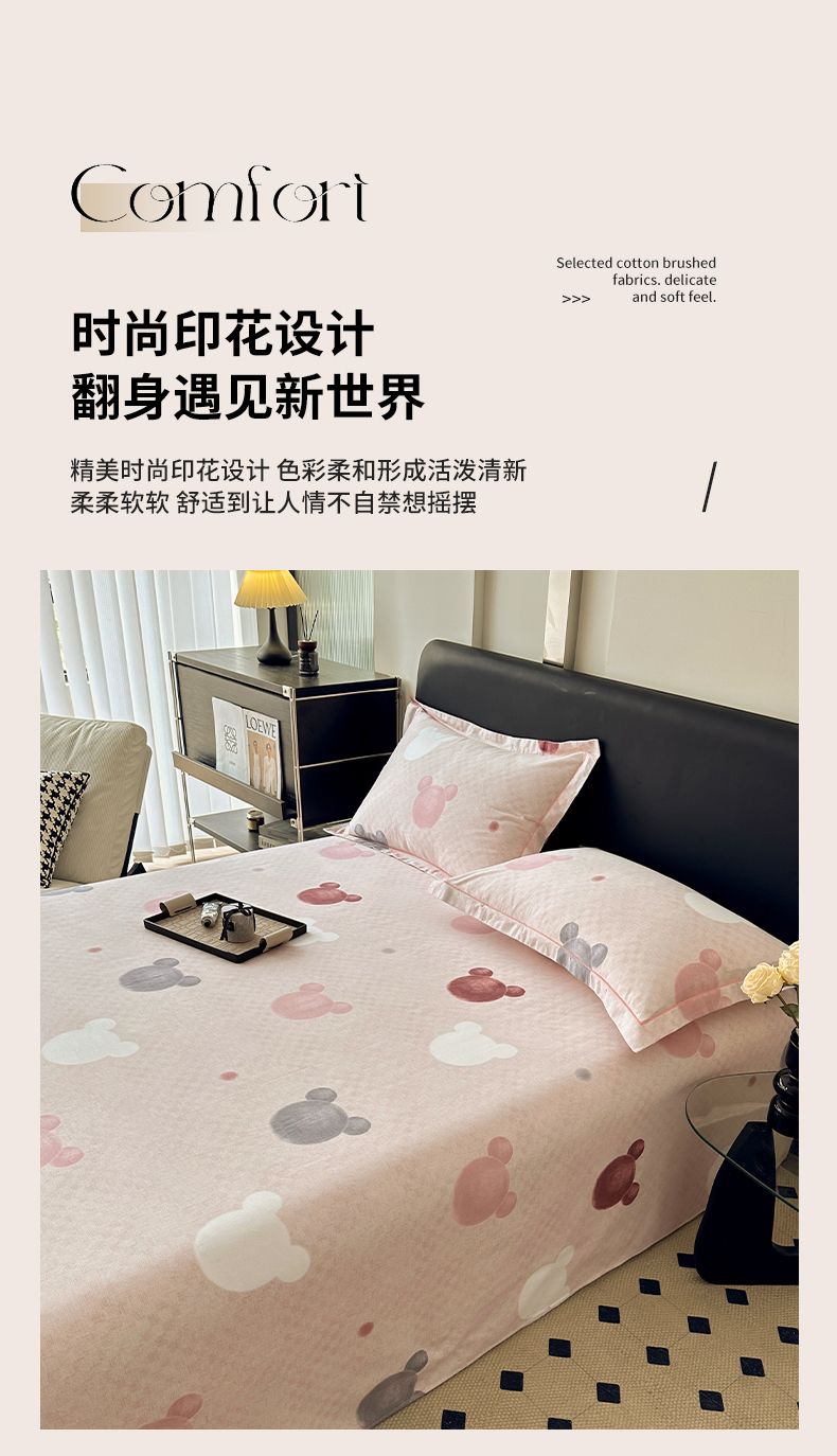 商品名称:大柏树 2025新款A类全棉磨毛印花单床单 妙妙屋粉