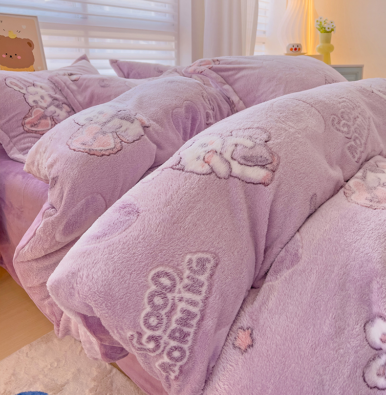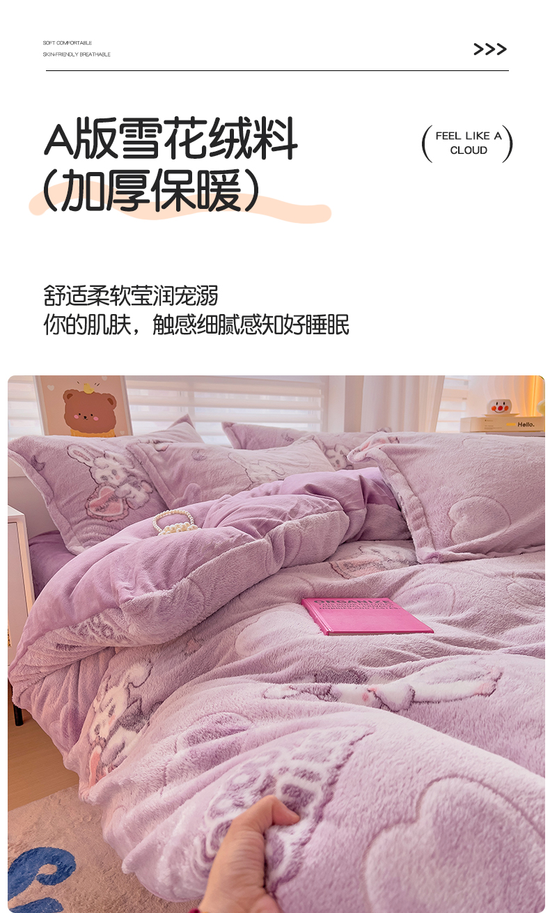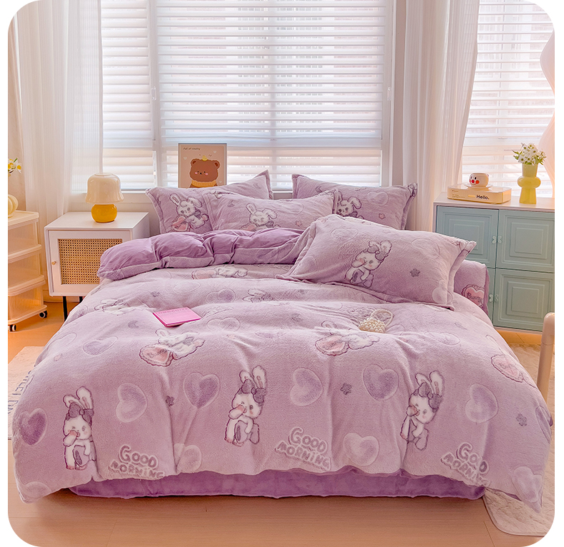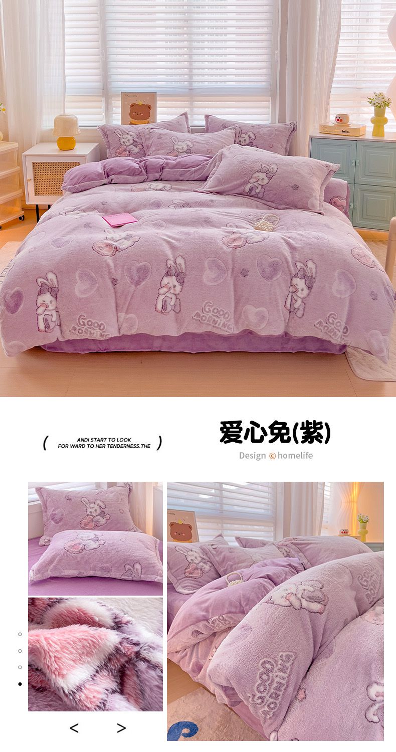 当前位置: 91家纺网 > 商品网购 > 床品套件 > 四件套 > 其它四件套 > 2024新款加厚雪花绒印花四件套-风格二(提供卖家秀) 爱心免(紫)