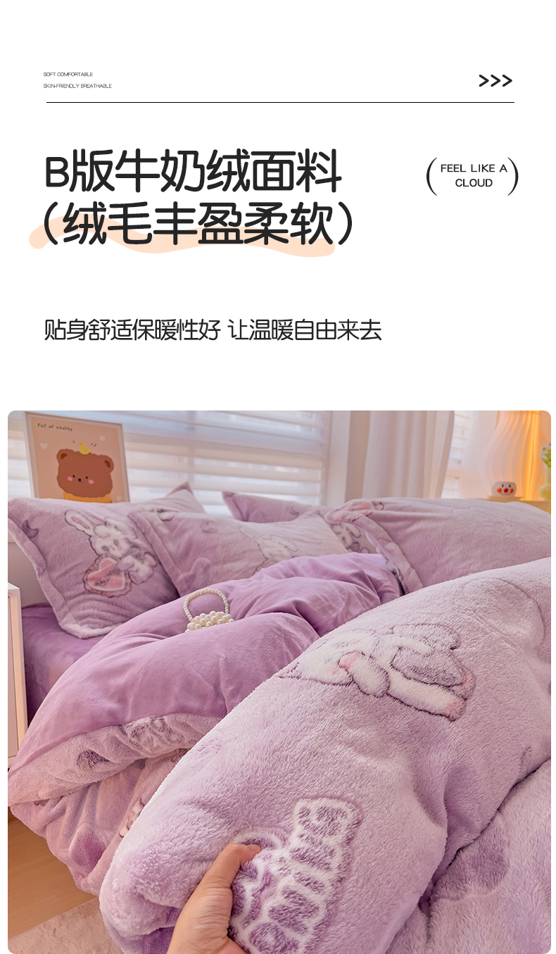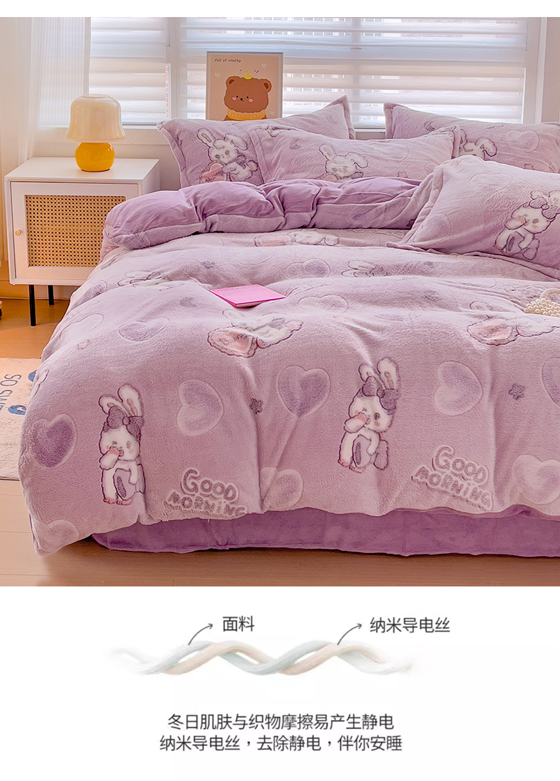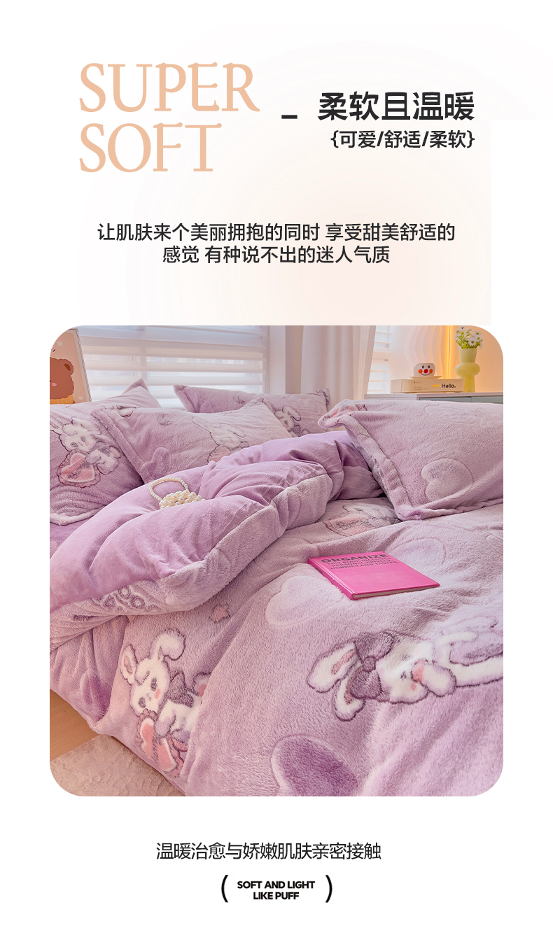 当前位置: 91家纺网 > 商品网购 > 床品套件 > 四件套 > 其它四件套 > 2024新款加厚雪花绒印花四件套-风格二(提供卖家秀) 爱心免(紫)
