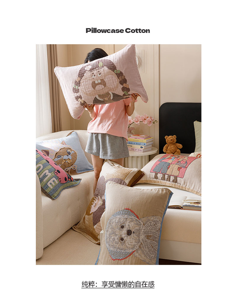 (总)麻依 2025新款治愈风全棉纯棉四层纱布枕巾,组合图仅供展示不可下单,KT时光,抱枕小熊,粉星KT,好多狗,花丛KT,可可小猫,亮晶晶,满心KT,暖心小狗,贴布猫,星星KT,星星人