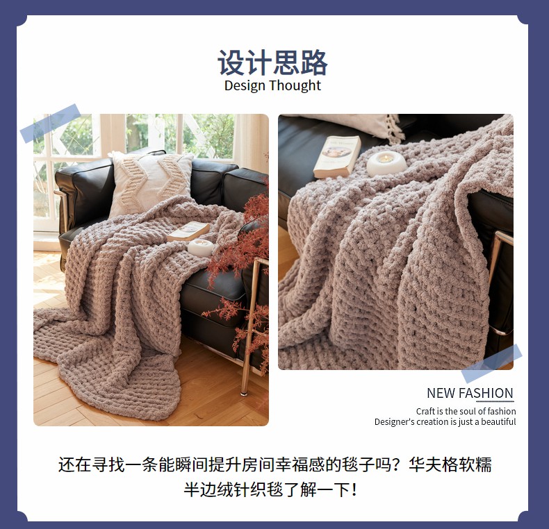 (总)暖绵绵家纺 2025新款针织盖毯--弗罗瑟,弗罗瑟-驼色,弗罗瑟-银灰