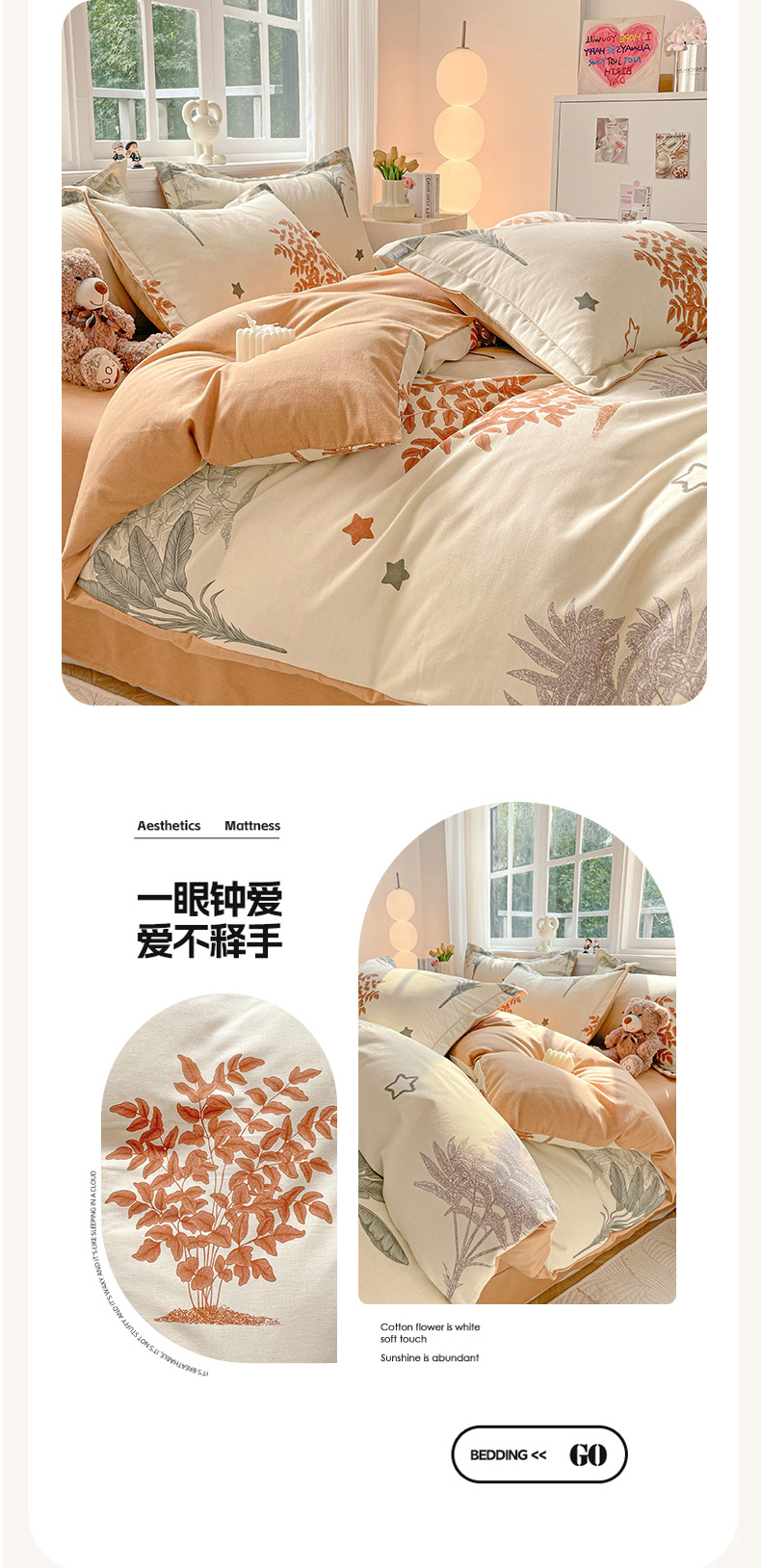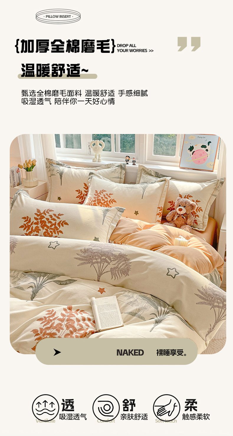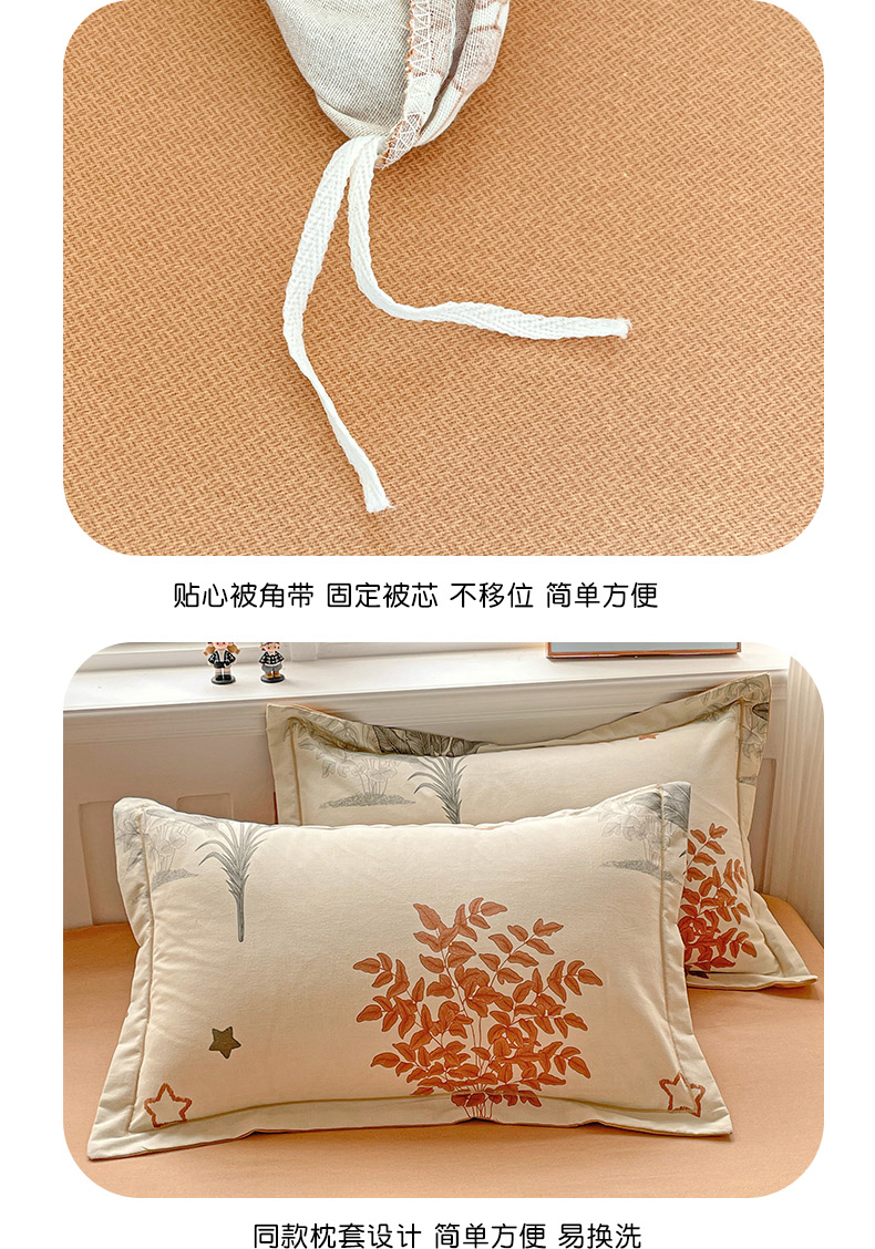 商品名称:优选良品 2025新款直播爆款加厚全棉磨毛四件套喷气印花纯棉(一字绣工艺款)学生三件套10月上新 浅香