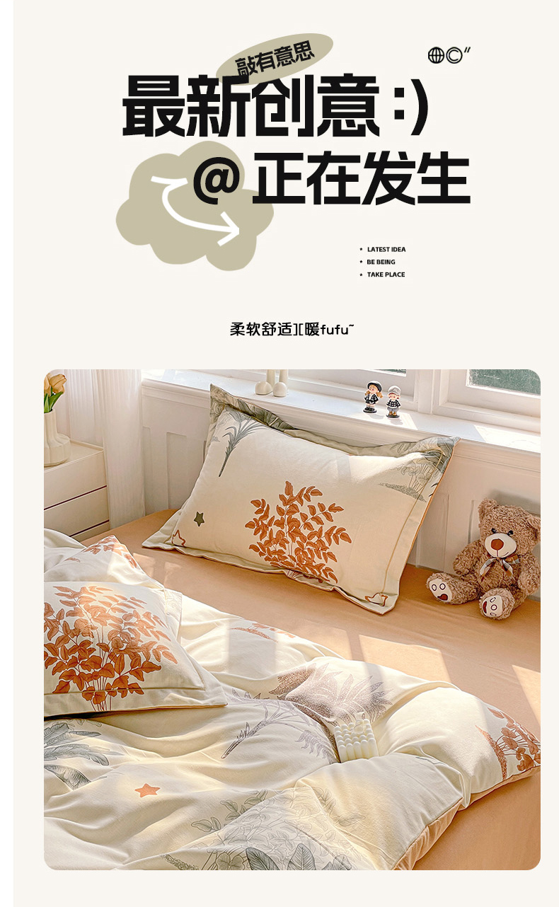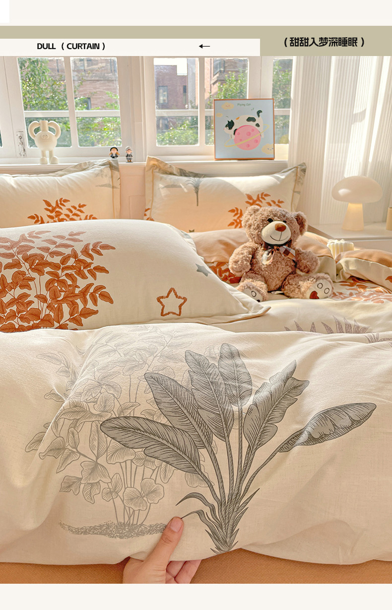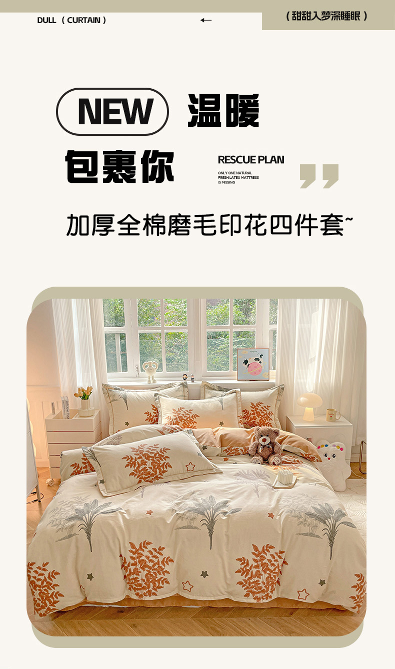 商品名称:优选良品 2025新款直播爆款加厚全棉磨毛四件套喷气印花纯棉(一字绣工艺款)学生三件套10月上新 浅香