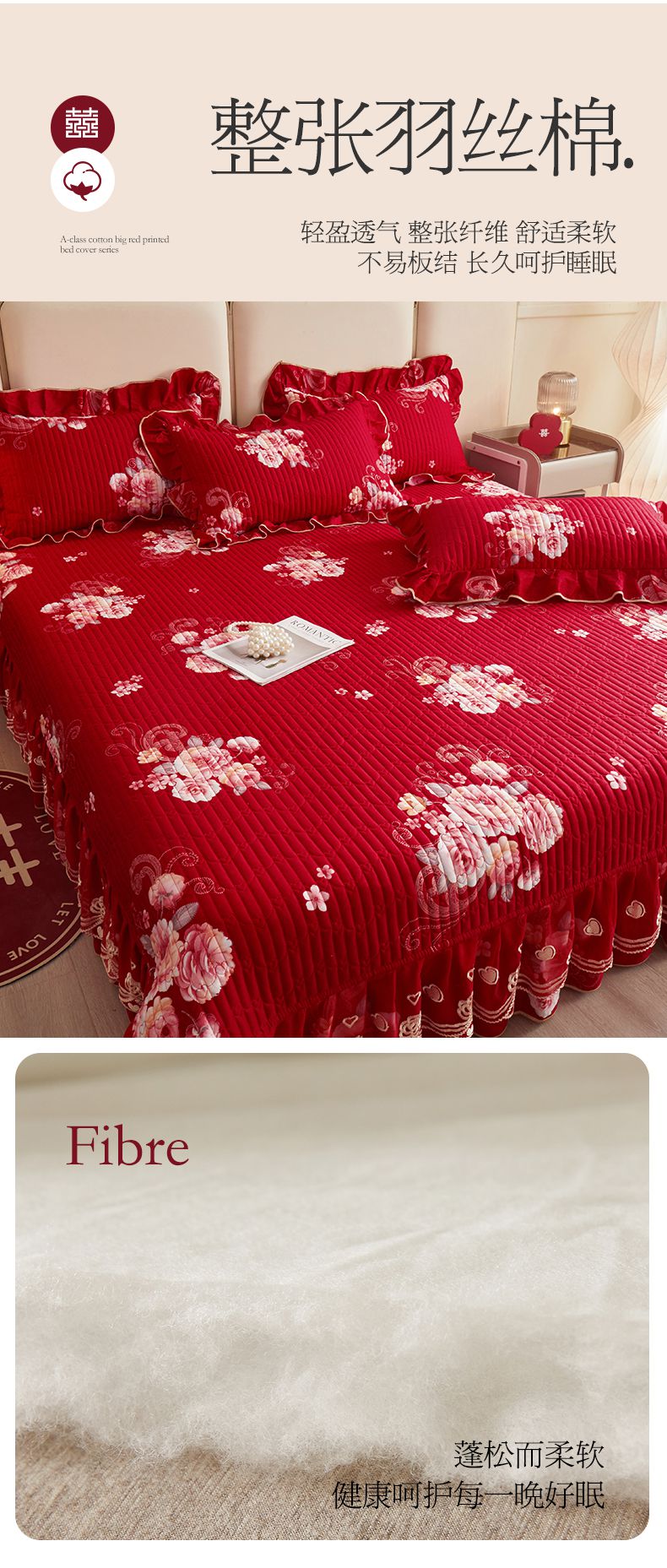 商品名称:宜凡家纺 2024新款A类全棉大红印花床盖四件套 龙凤和鸣