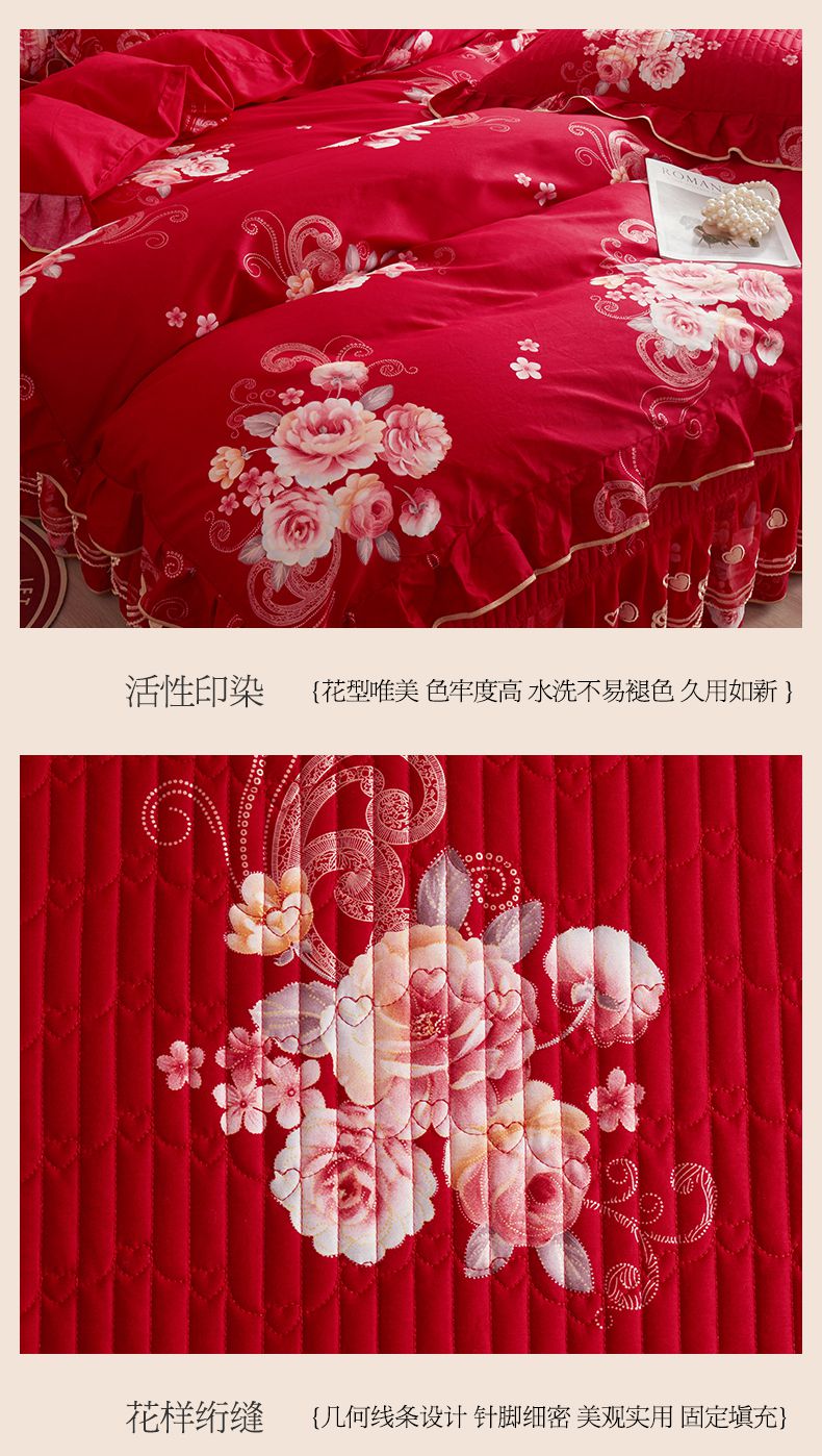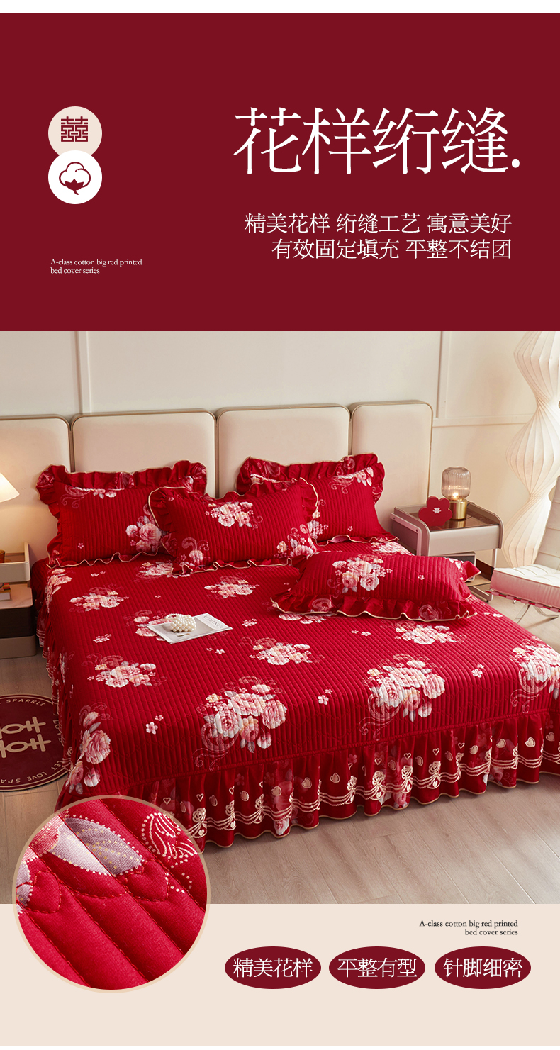 (总)宜凡家纺 2025新款婴儿绒压花全夹棉床裙四件套,韵雅-中国红,韵雅-黑天鹅
