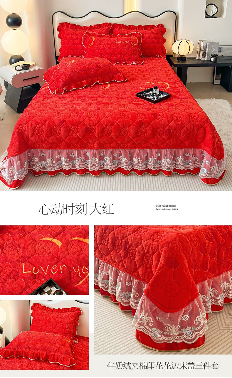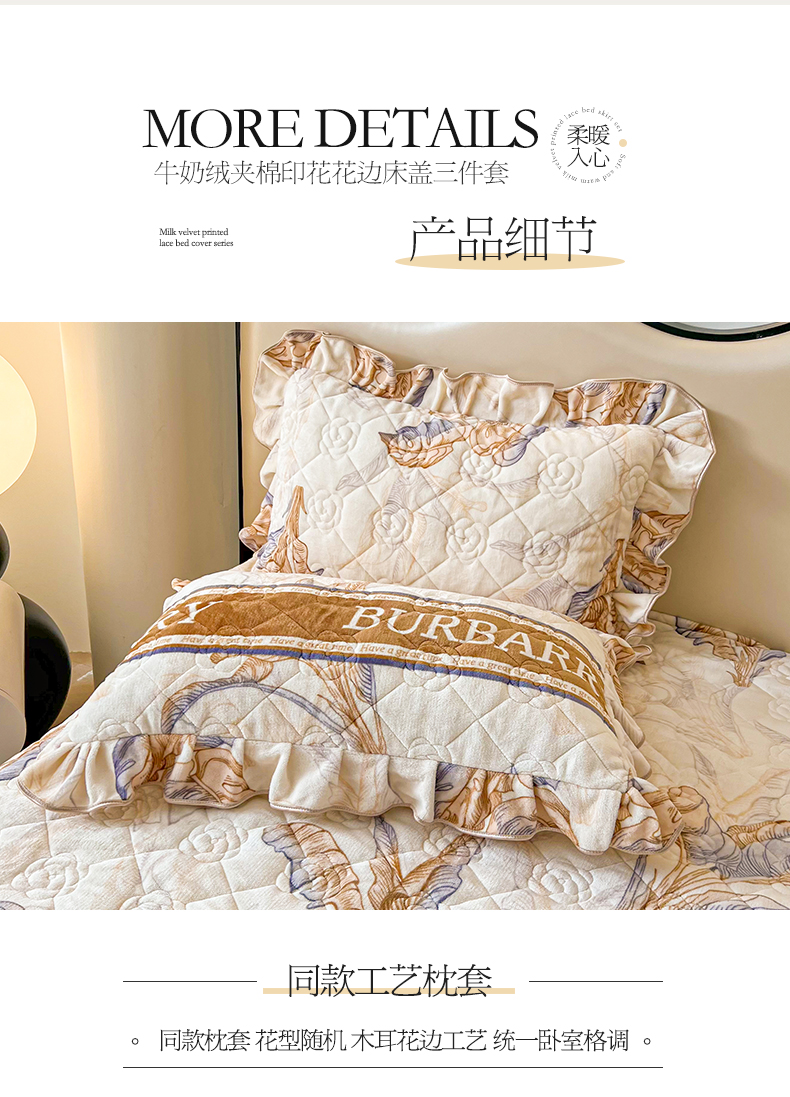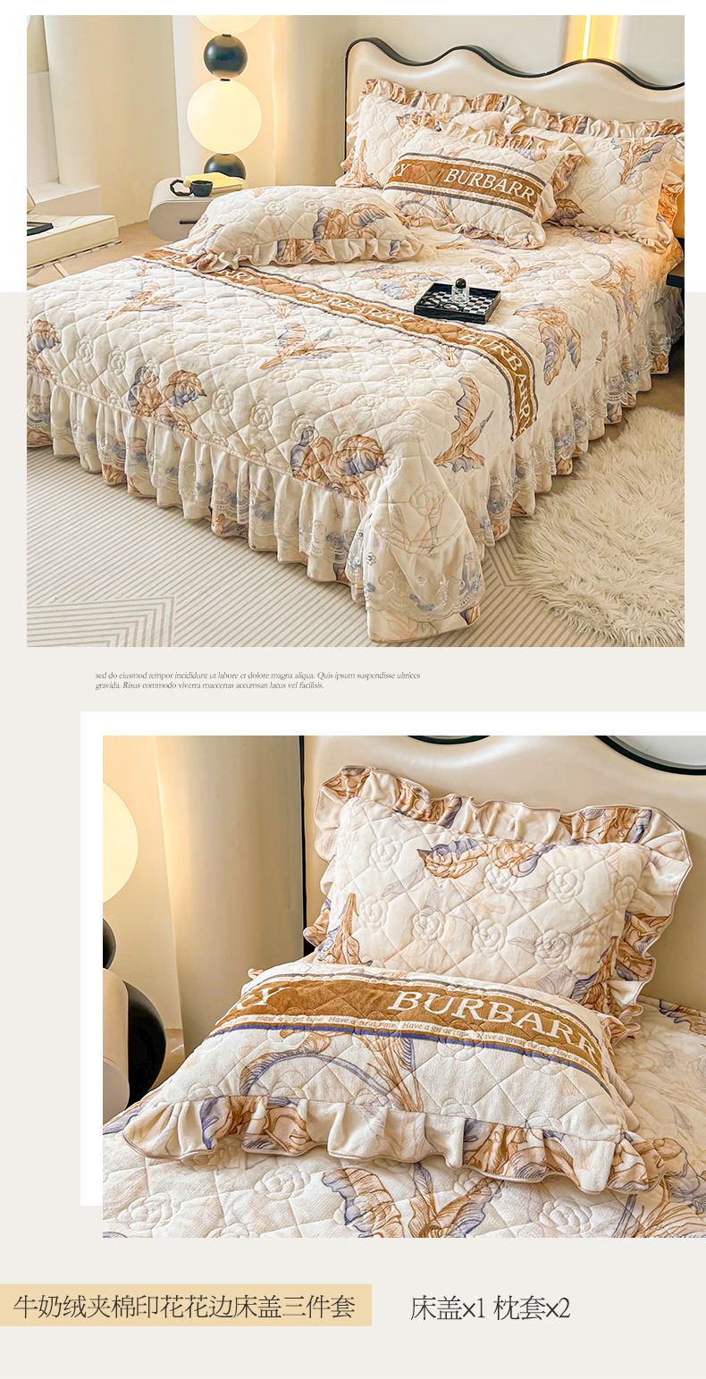 当前位置: 91家纺网 > 商品网购 > 床品套件 > 三件套 > 宜凡家纺 2024新款牛奶绒印花夹棉花边床盖三件套 浮世花梦