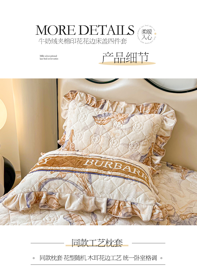 商品名称:宜凡家纺 2024新款牛奶绒印花夹棉花边床盖四件套 欧曼情调