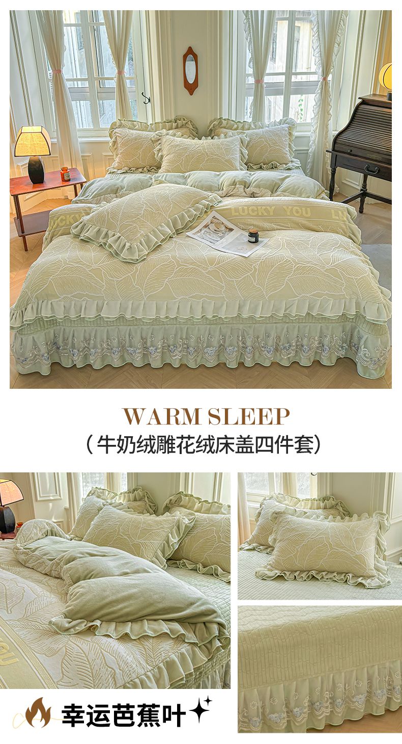 (总)宜凡家纺 2025新款兔绒提花牛奶绒夹棉床裙四件套,爱心 少女粉,爱心 粉紫,爱心 驼色,蝶舞 大红,蝶舞 米色,蝶舞 浅紫,蝶舞 玉色,简爱 苍青,简爱 豆沙紫,简爱 玉色,樱桃 苍青,樱桃 豆沙紫,樱桃 奶油白