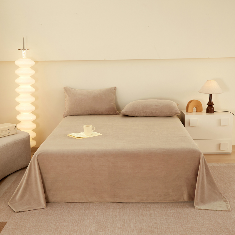 • 91家纺网 家纺一手货源 找家纺 棉乐町 2025新款纯色牛奶绒床单素色床单跨境外贸直播爆款 茶咖色