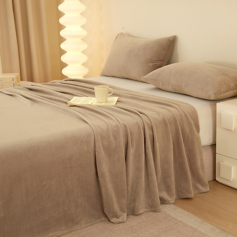棉乐町 2025新款纯色牛奶绒床单素色床单跨境外贸直播爆款 茶咖色