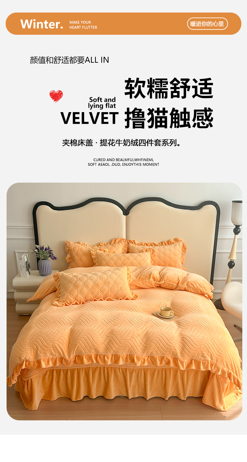 (总)十个点家纺 2024新款牛奶绒夹棉床盖四件套-唯美系列,唯美-爱尔蓝,唯美-果绿,唯美-蜜桃粉,唯美-秋桔,唯美-深灰,唯美-樱紫