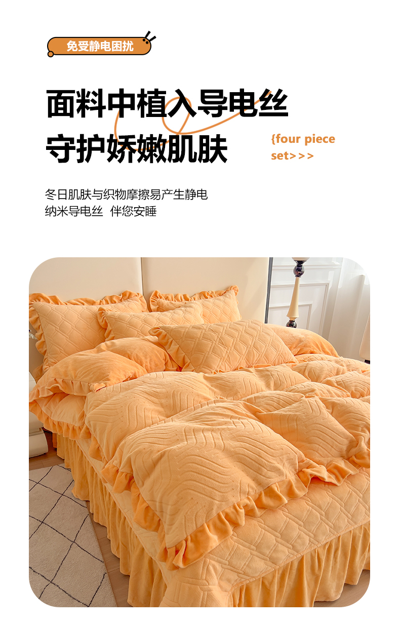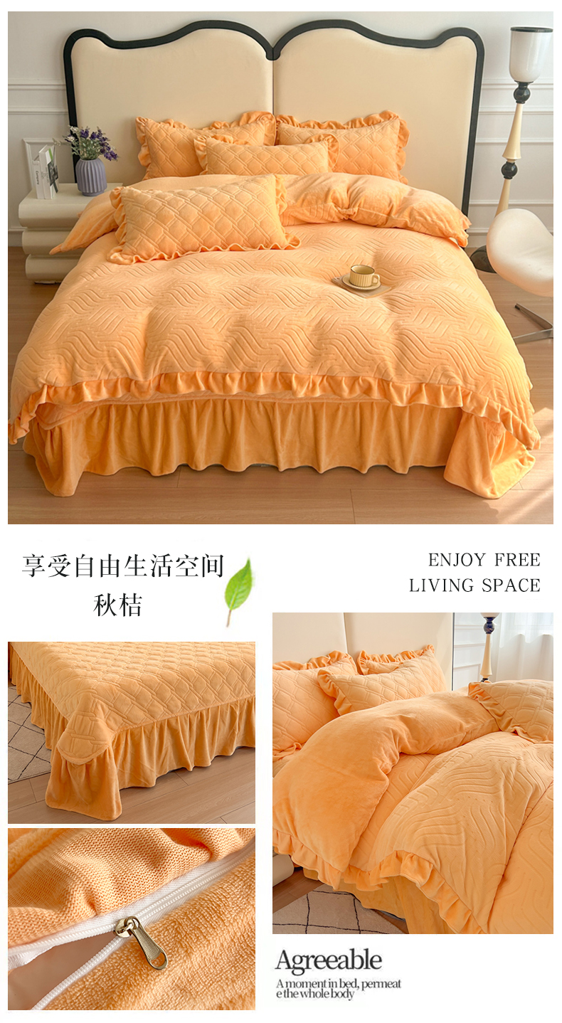 商品名称:十个点家纺 2024新款牛奶绒夹棉床盖四件套-唯美系列 唯美-秋桔