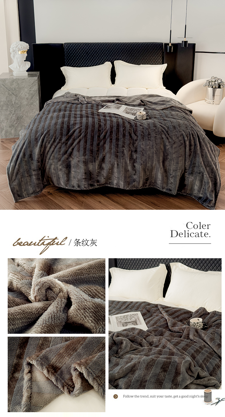 春妮家纺 2024新款提花牛奶绒毛毯 条纹灰