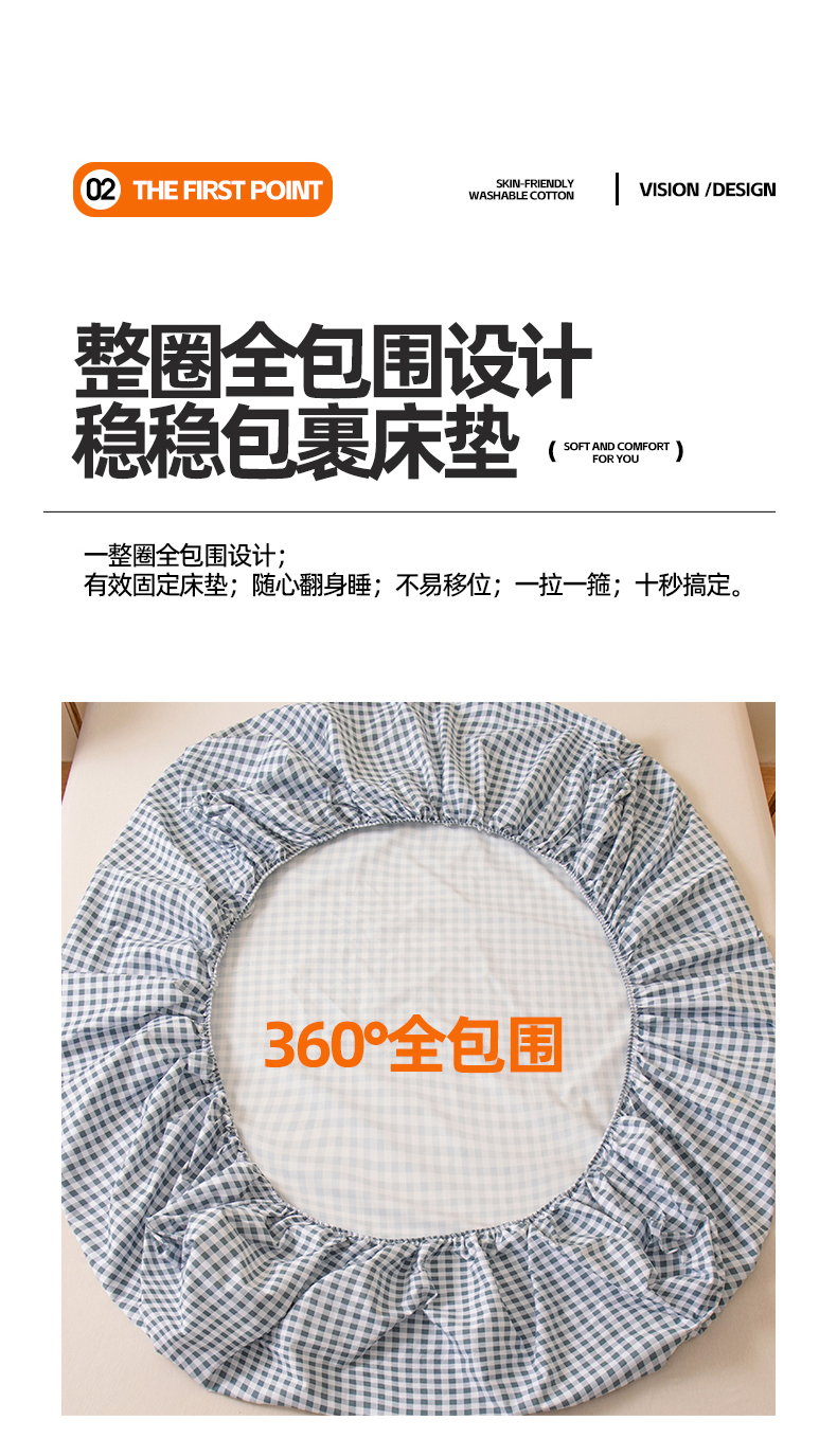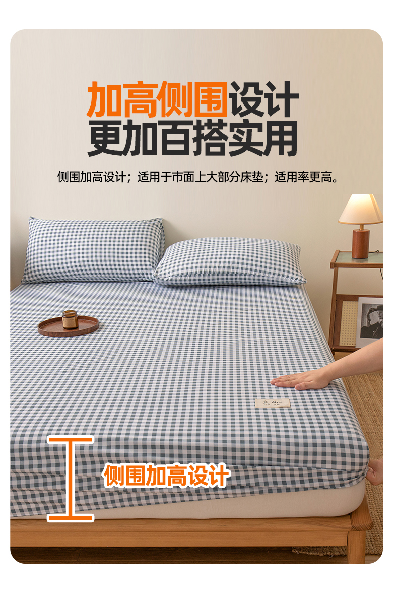 商品名称:暖季家纺 2025新款单层无印风防水床笠 防水-宝蓝小格
