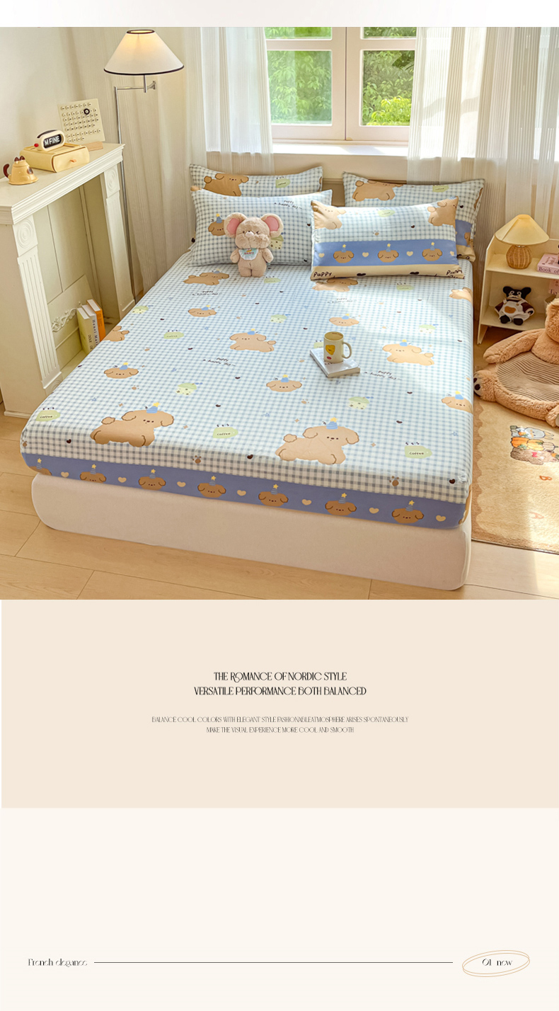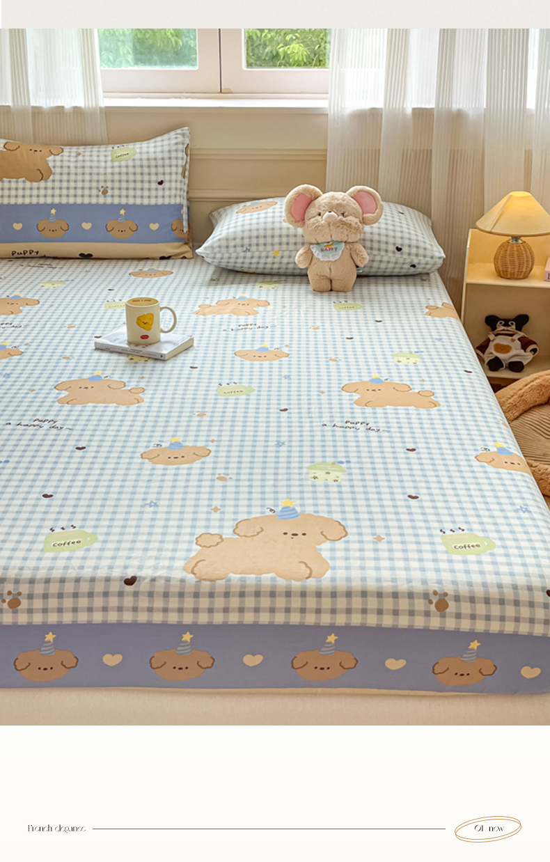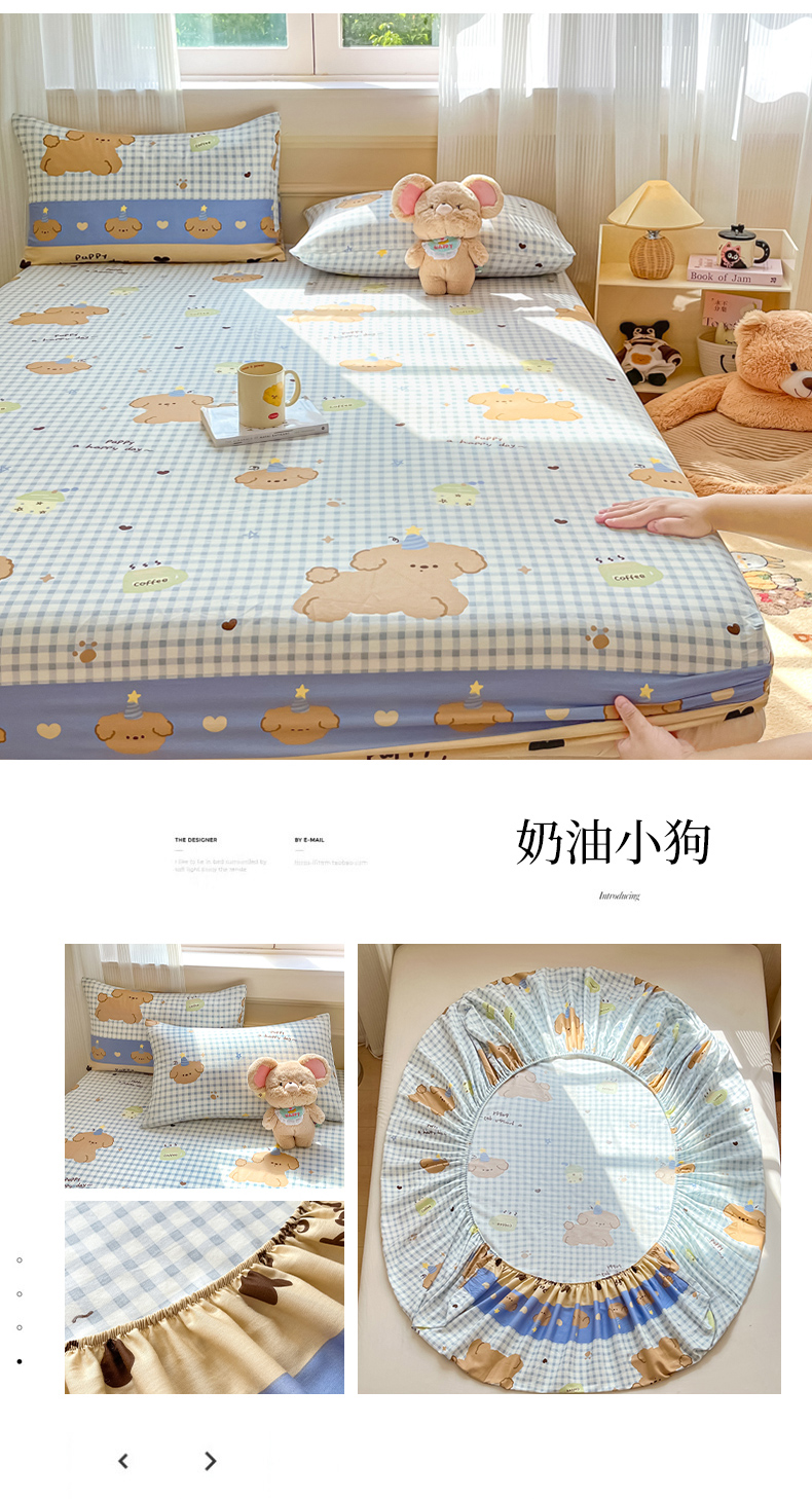 商品名称:寻米 2024新款全棉印花床笠 奶油小狗