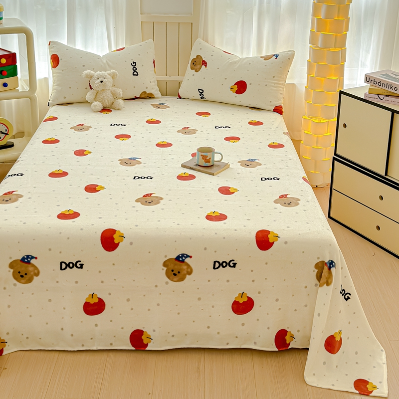 金丝鸟家纺 2024新款200g牛奶绒单床单系列 西红柿小狗