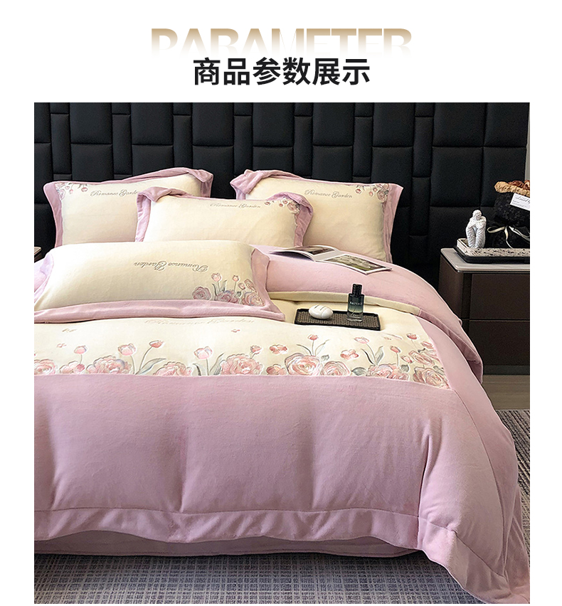 商品名称:家居1号家纺 2024新款230克全消光牛奶绒四件套-花海 花海-粉豆沙