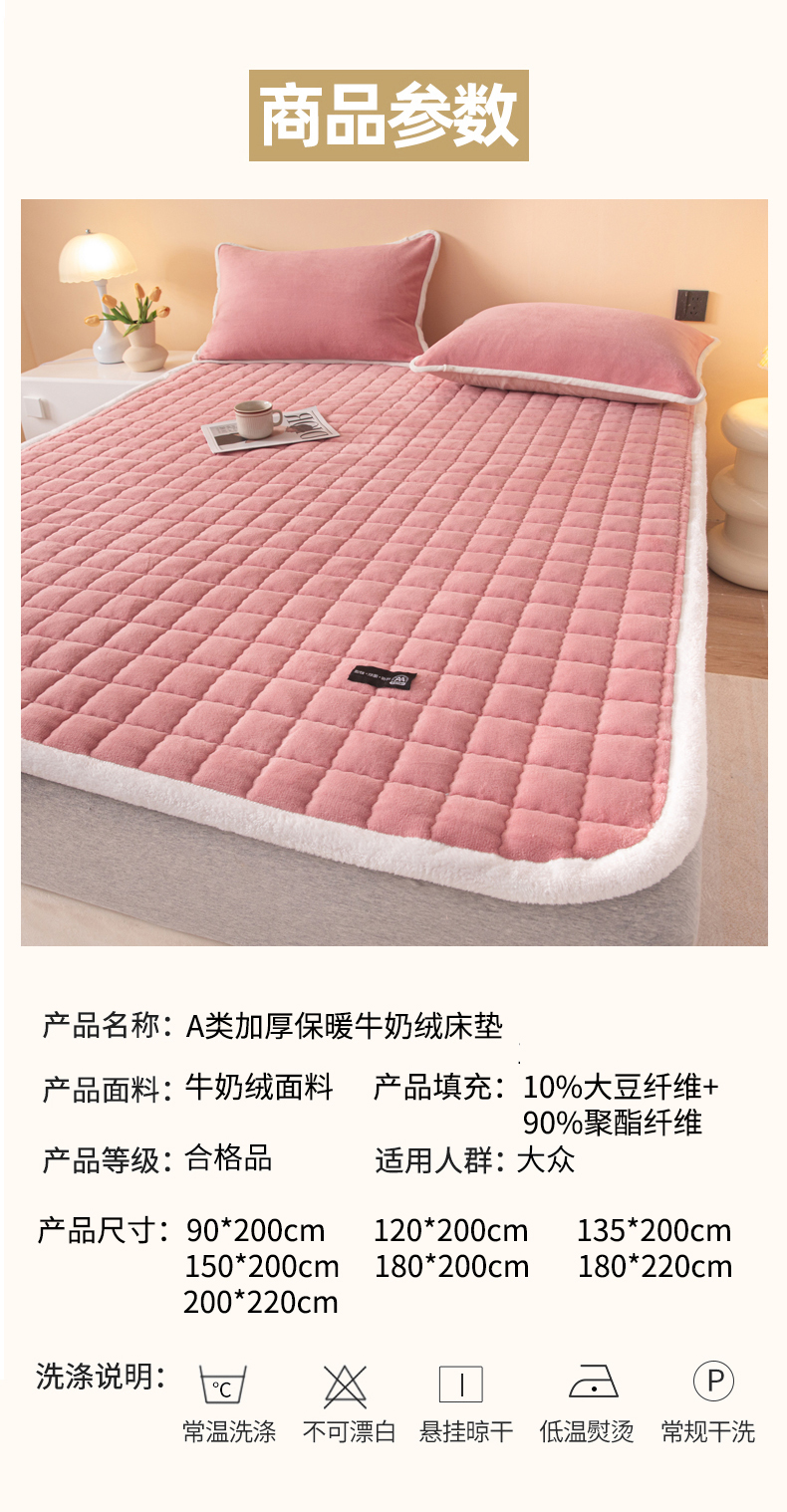 当前位置: 91家纺网 > 商品网购 > 床垫/床褥 > 普通床垫 > 恒尚居 2024-秋冬新品牛奶绒床垫床褥垫加厚夹棉软床垫床褥子床护垫保护垫 爱格-绒【豆沙粉】