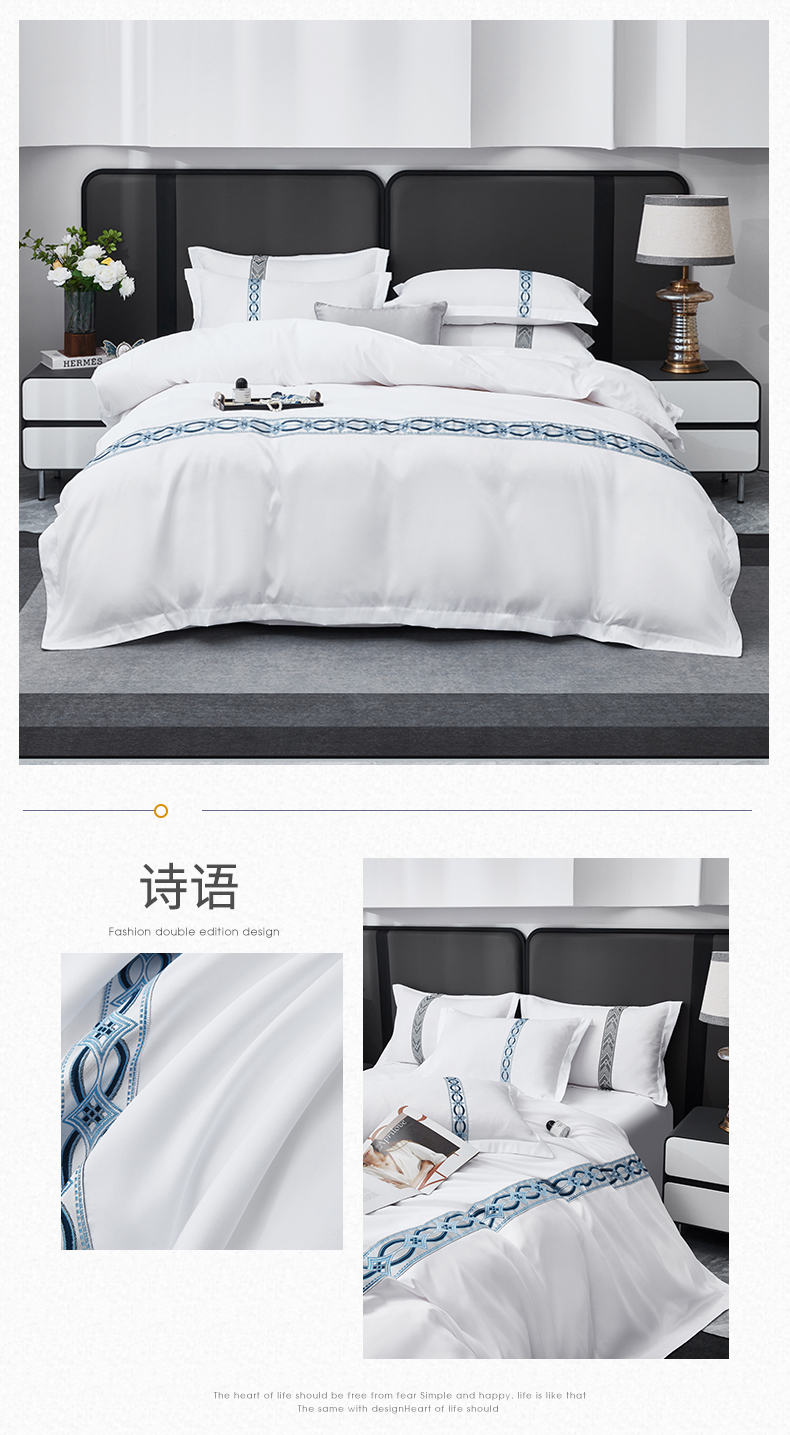 当前位置: 91家纺网 > 商品网购 > 床品套件 > 四件套 > 其它四件套 > 罗菲尼酒店用品 2025新款织带高仿棉酒店四件套宾馆四件套 诗语