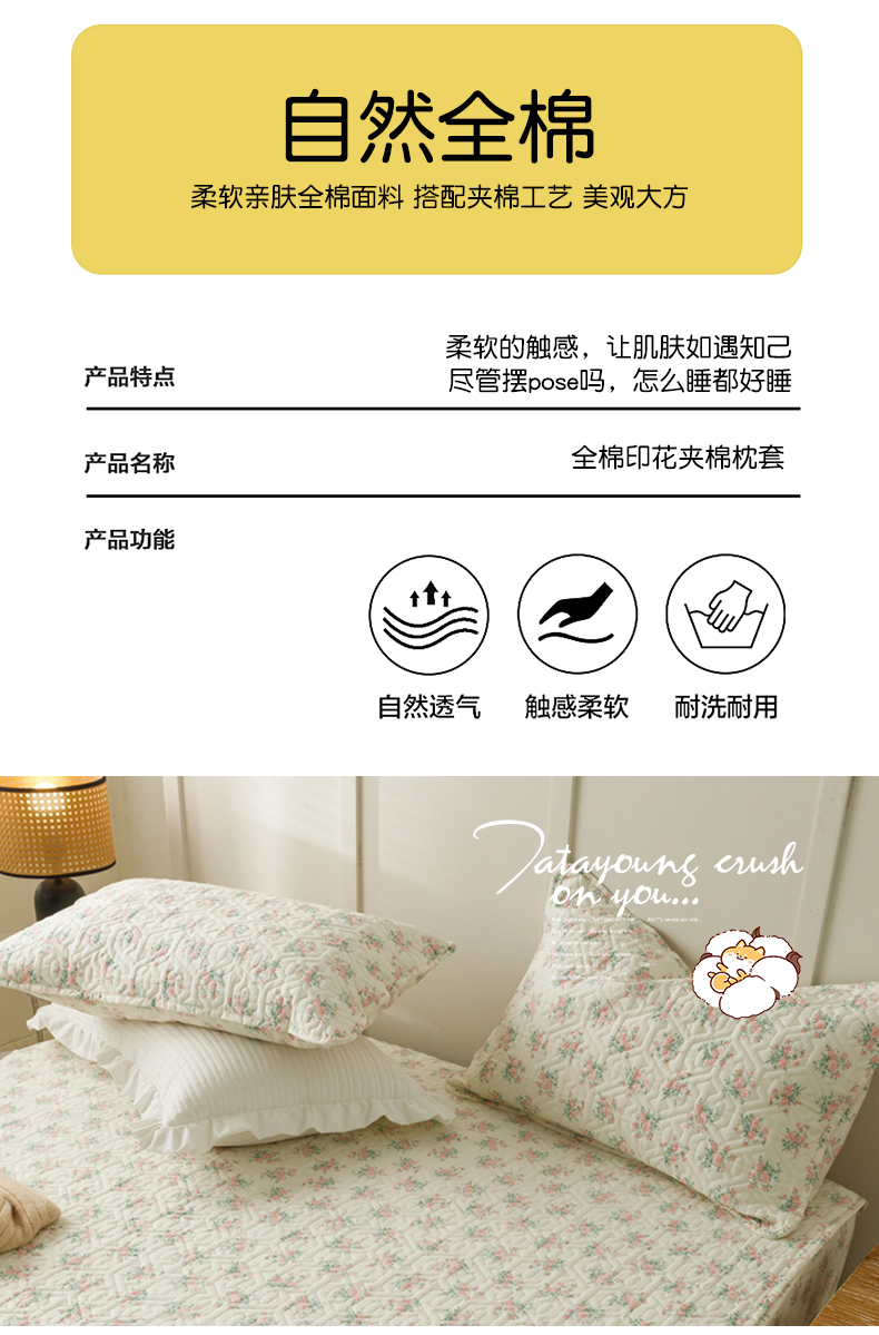 商品名称:2024新款全棉夹棉枕套-印花类 少女心
