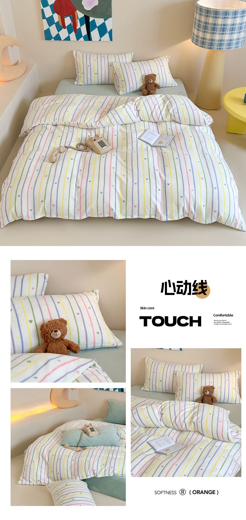 商品名称:三味舒屋 2025新款卡通印花牛奶绒单被套枕套床笠 心动线