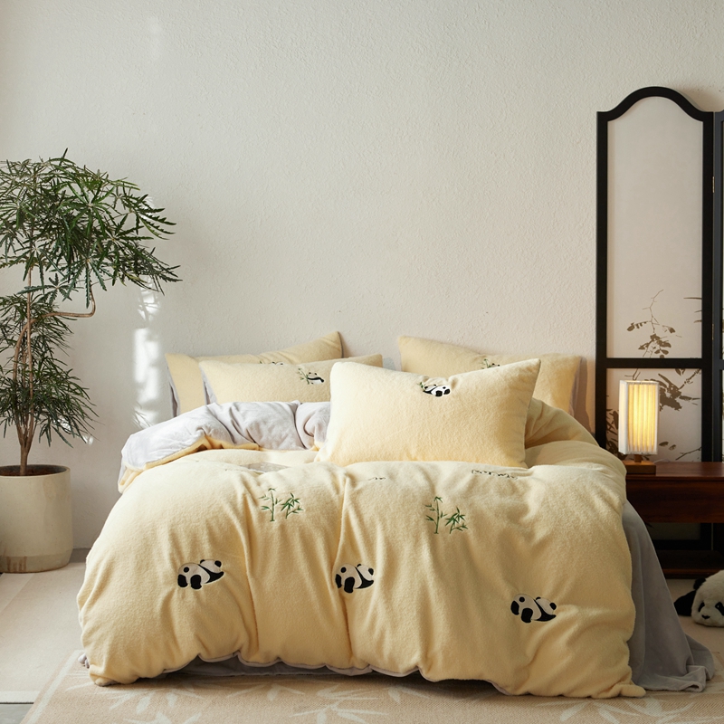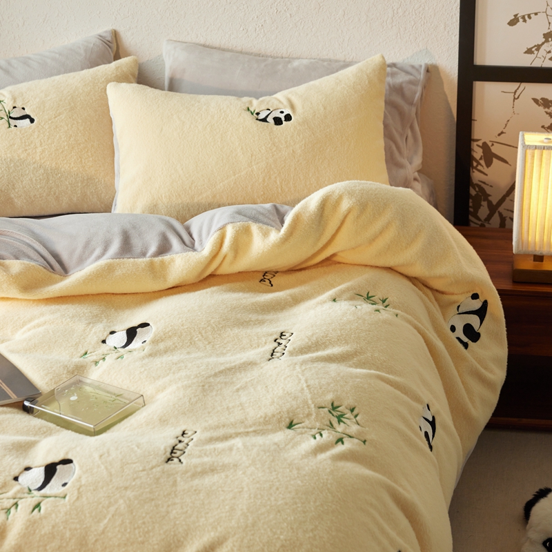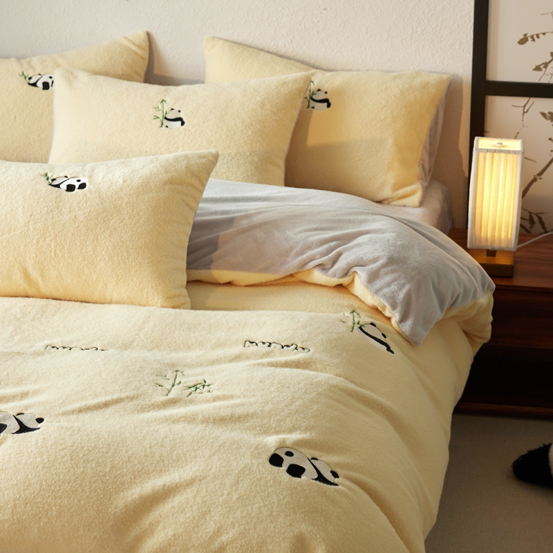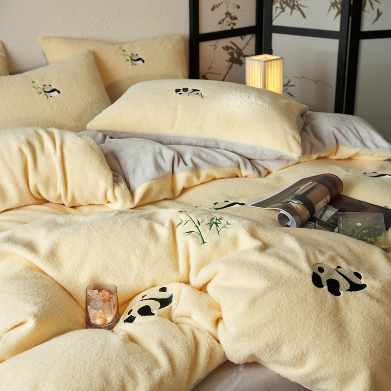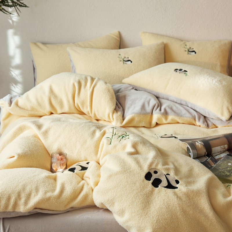 初拾 2024新款300g暖羊绒绣花四件套-熊猫噗噗 熊猫噗噗-奶黄