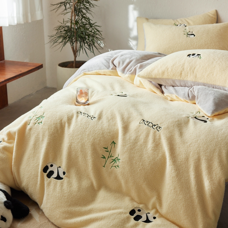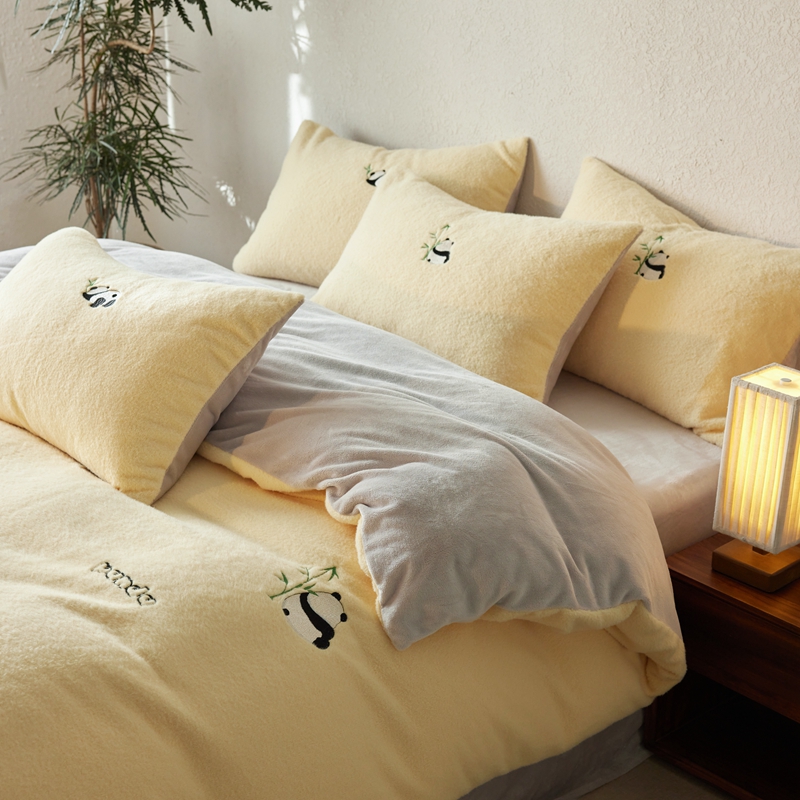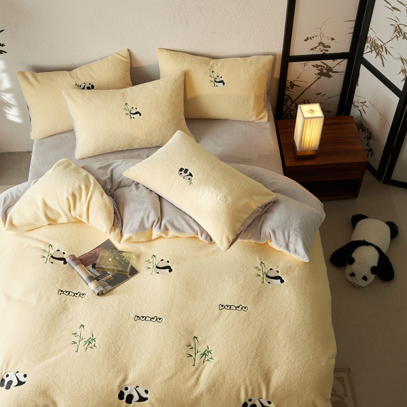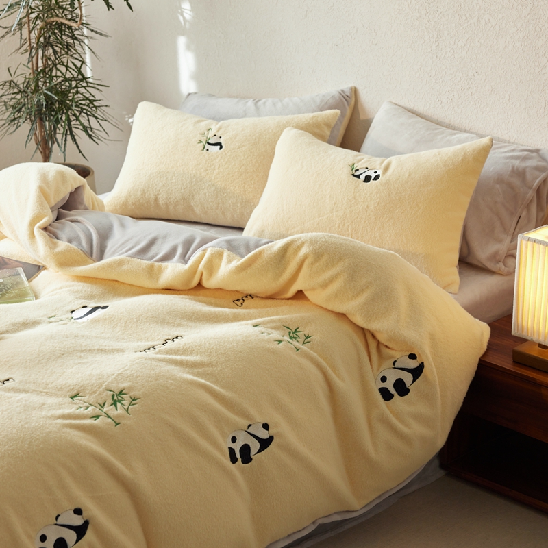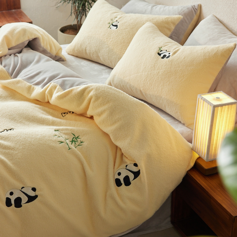 初拾 2024新款300g暖羊绒绣花四件套-熊猫噗噗 熊猫噗噗-奶黄