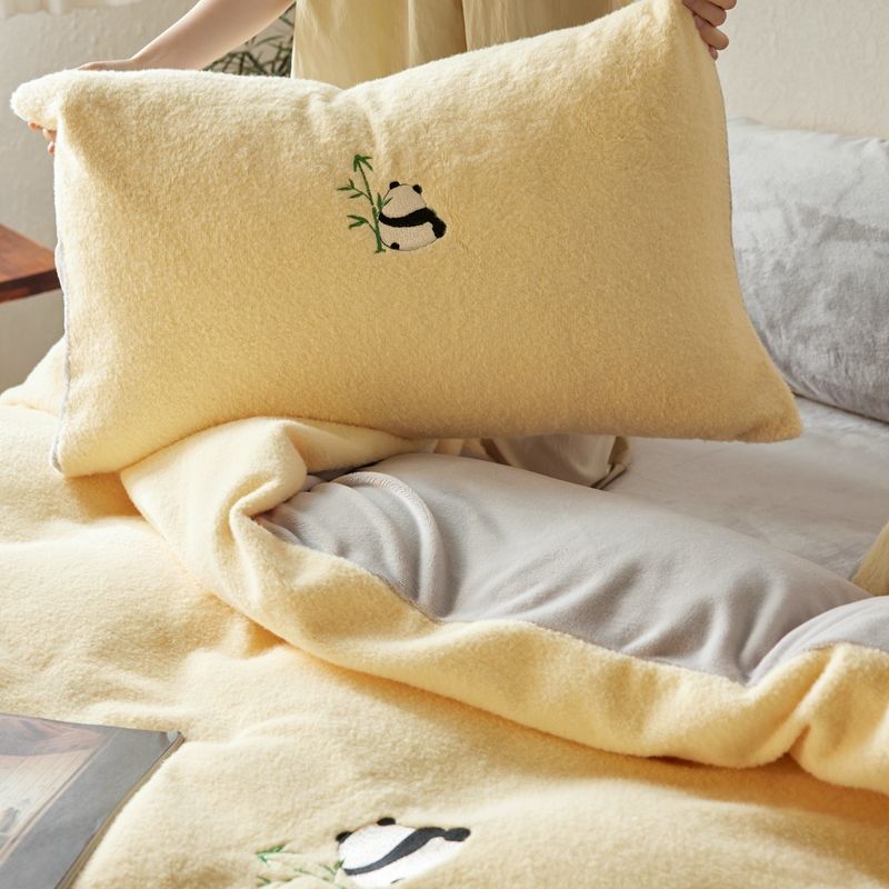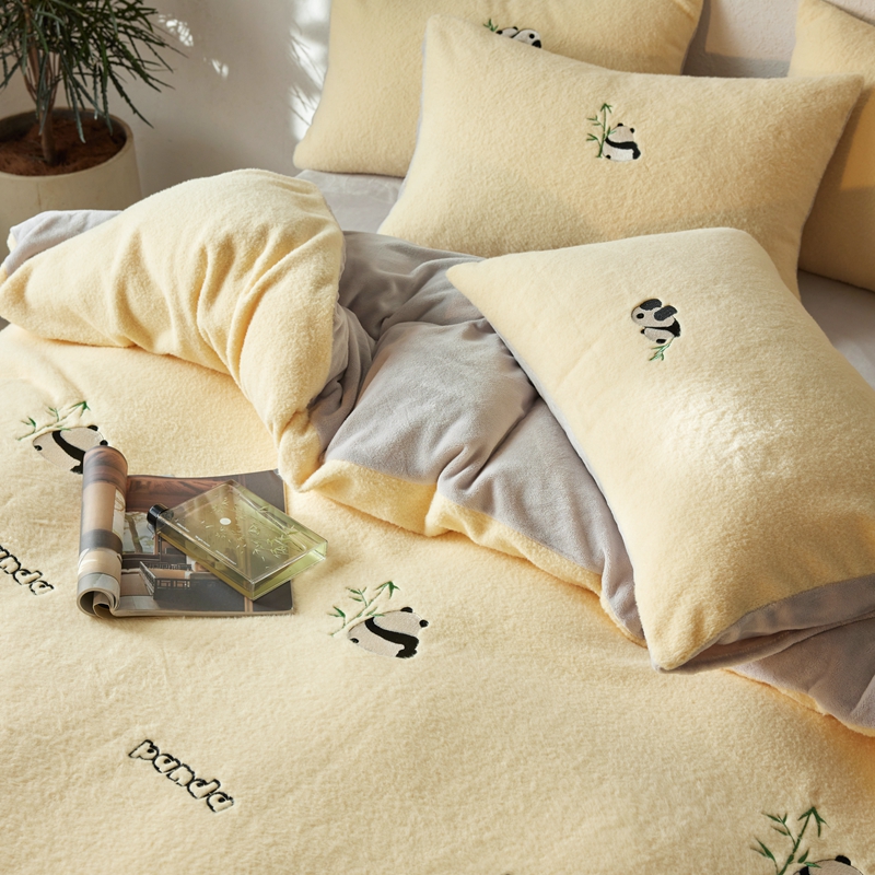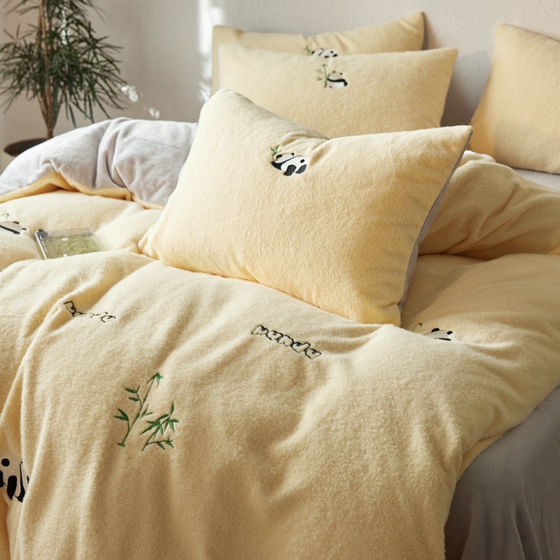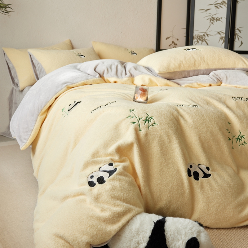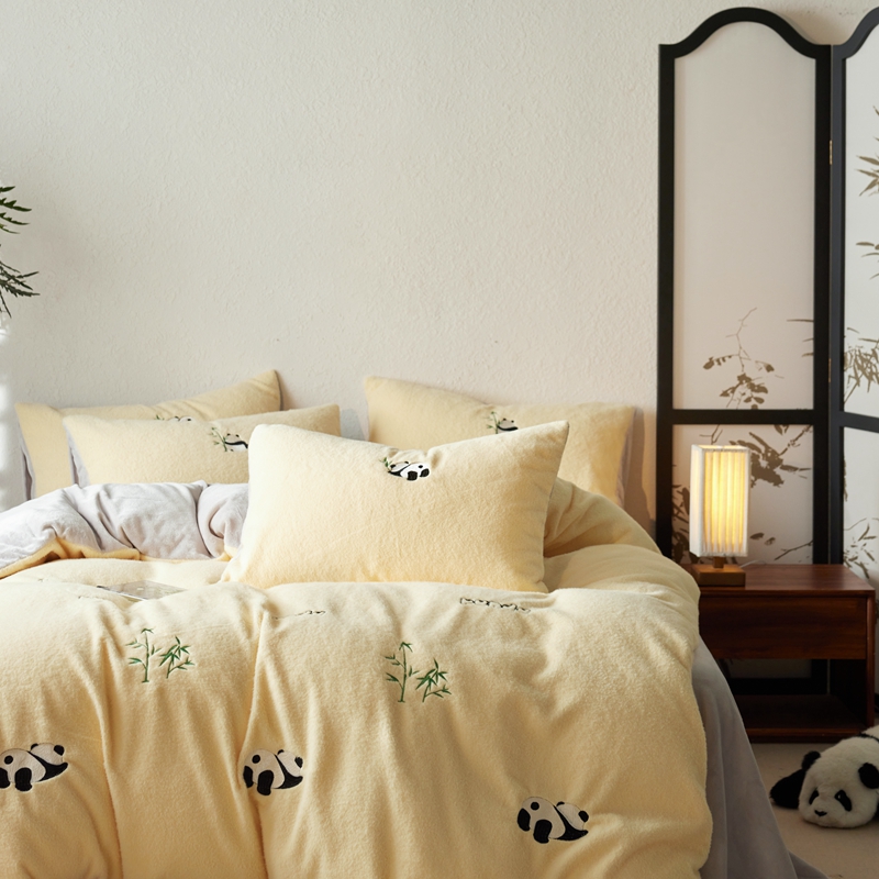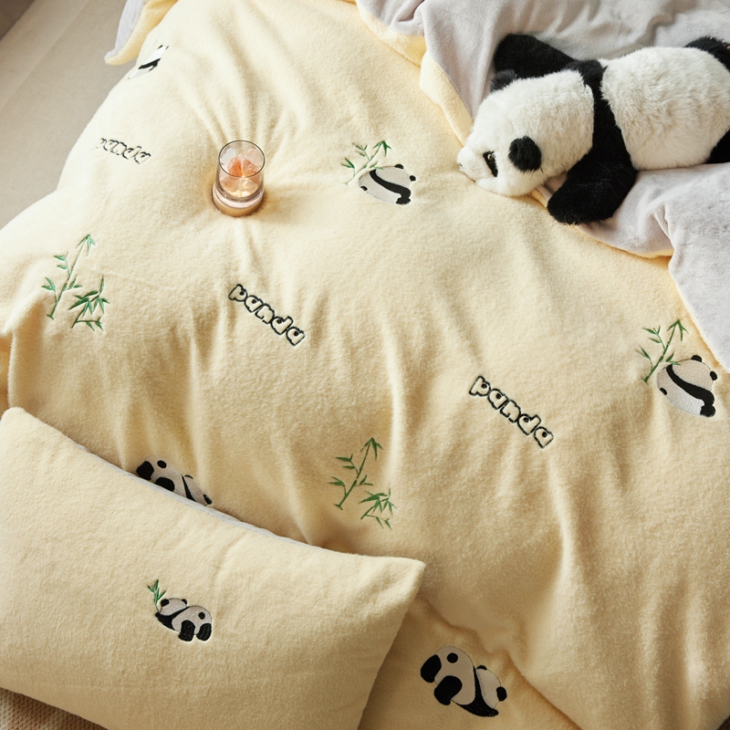 商品名称:初拾 2024新款300g暖羊绒绣花四件套-熊猫噗噗 熊猫噗噗-奶黄