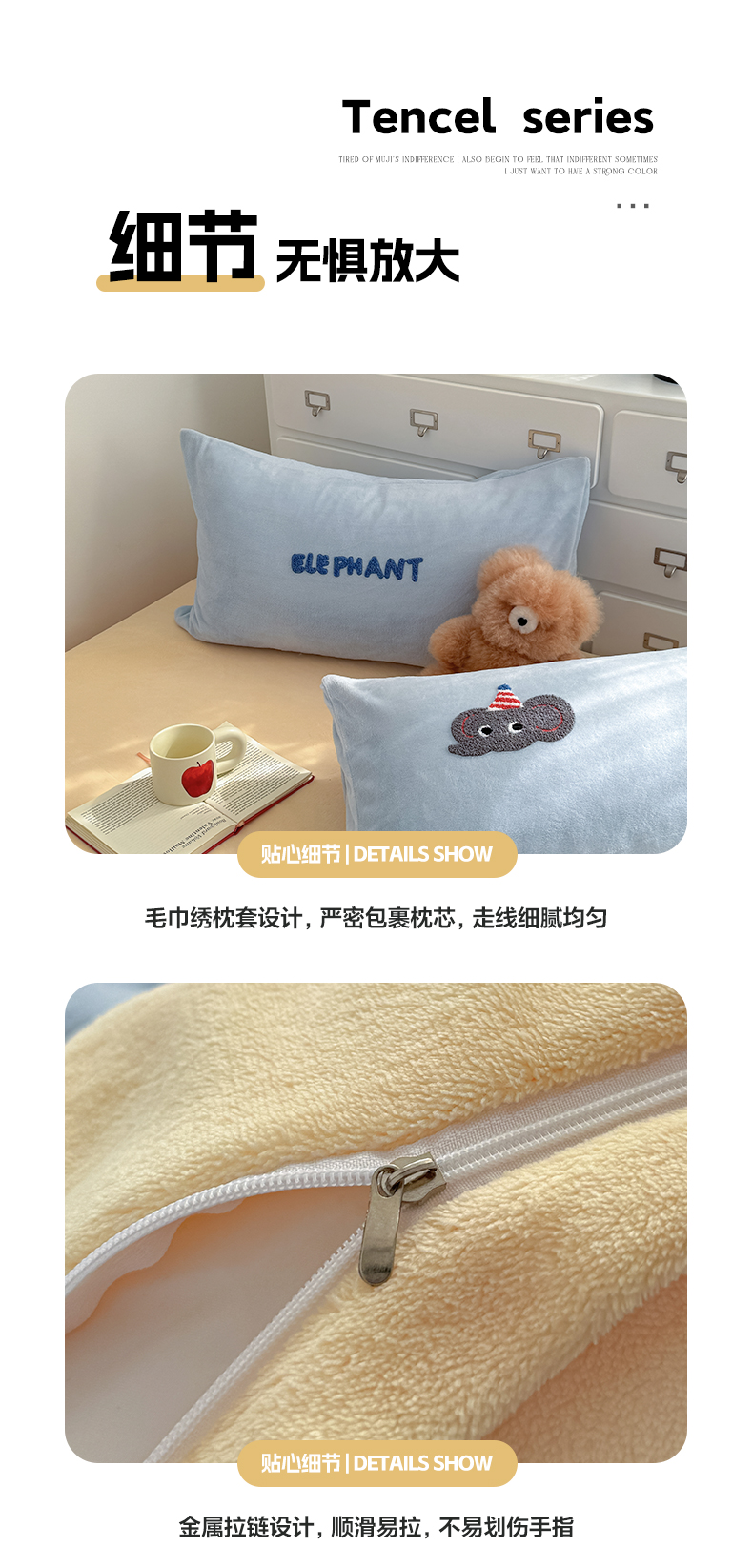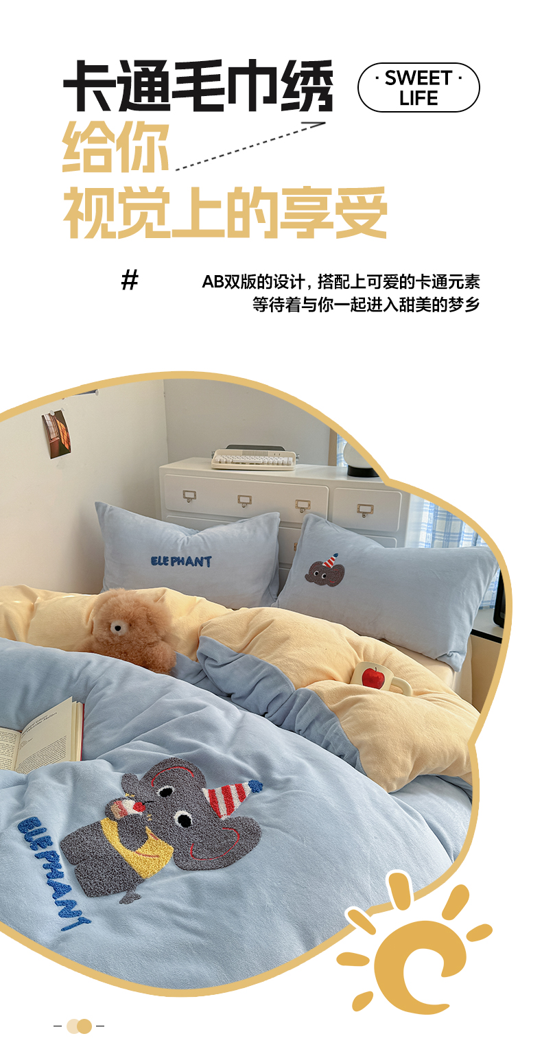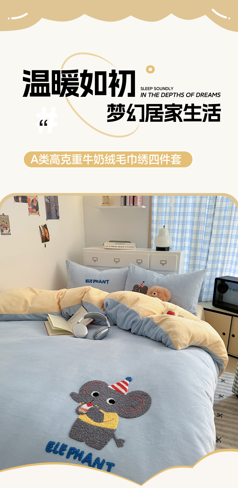 商品名称:如一 2024新款A类高克重牛奶绒毛巾绣四件套 可爱象