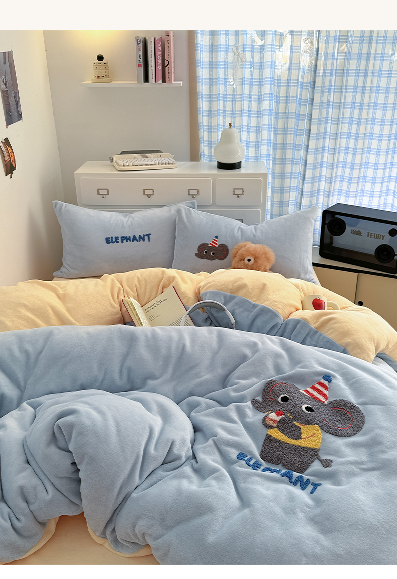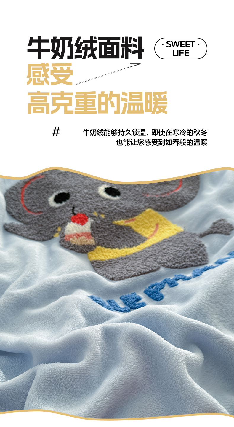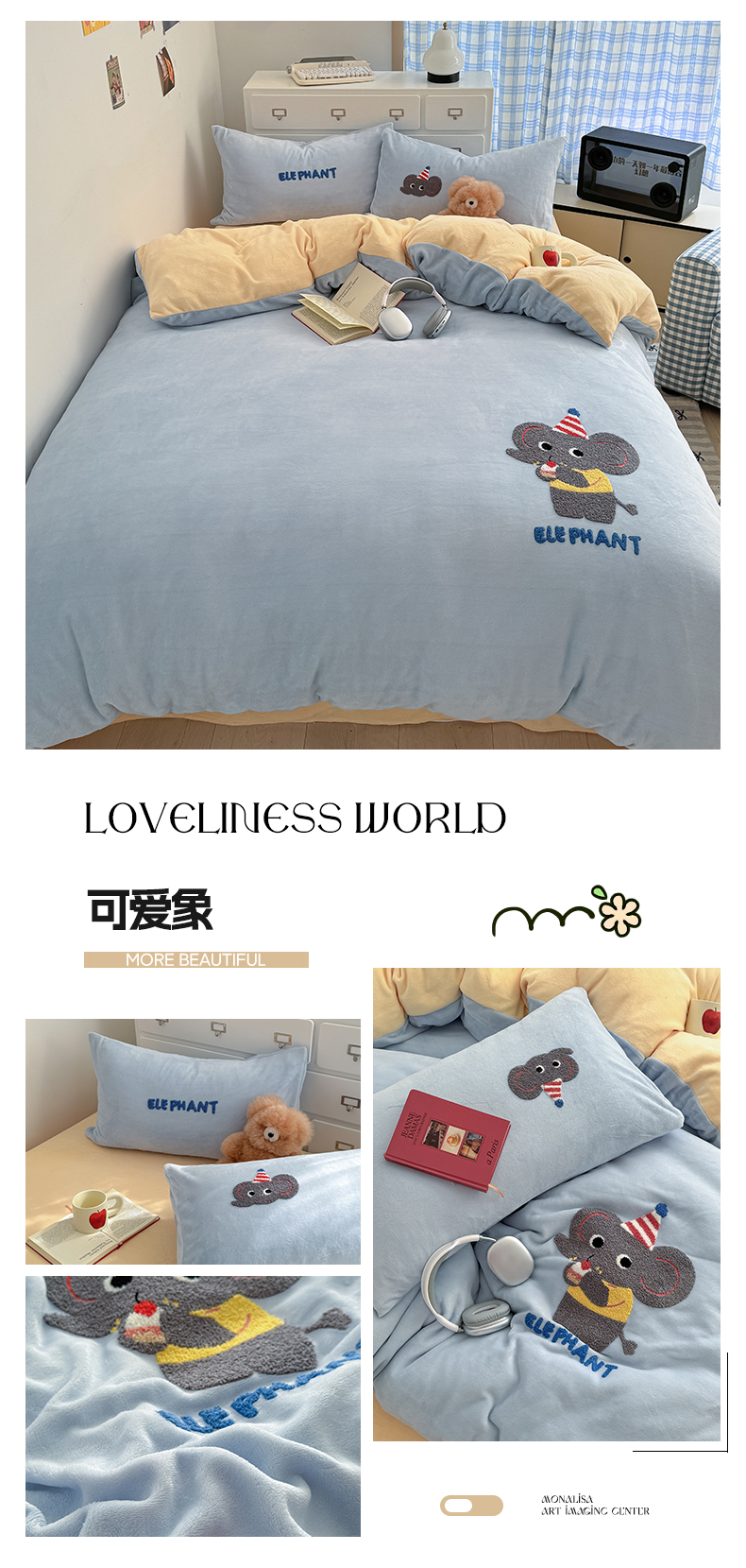 商品名称:如一 2024新款A类高克重牛奶绒毛巾绣四件套 可爱象