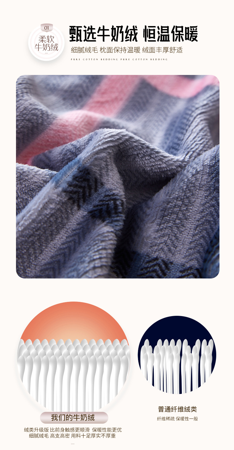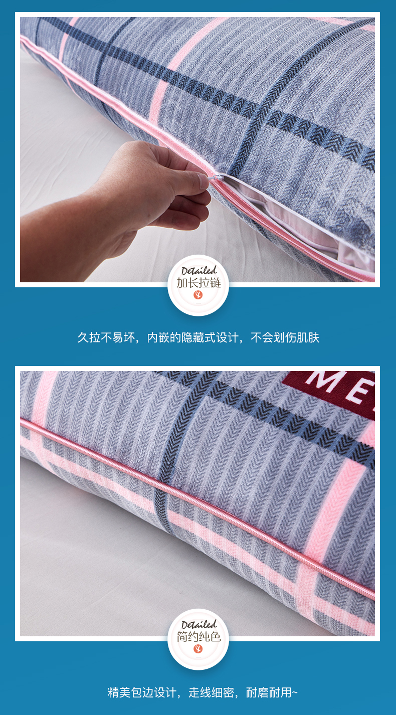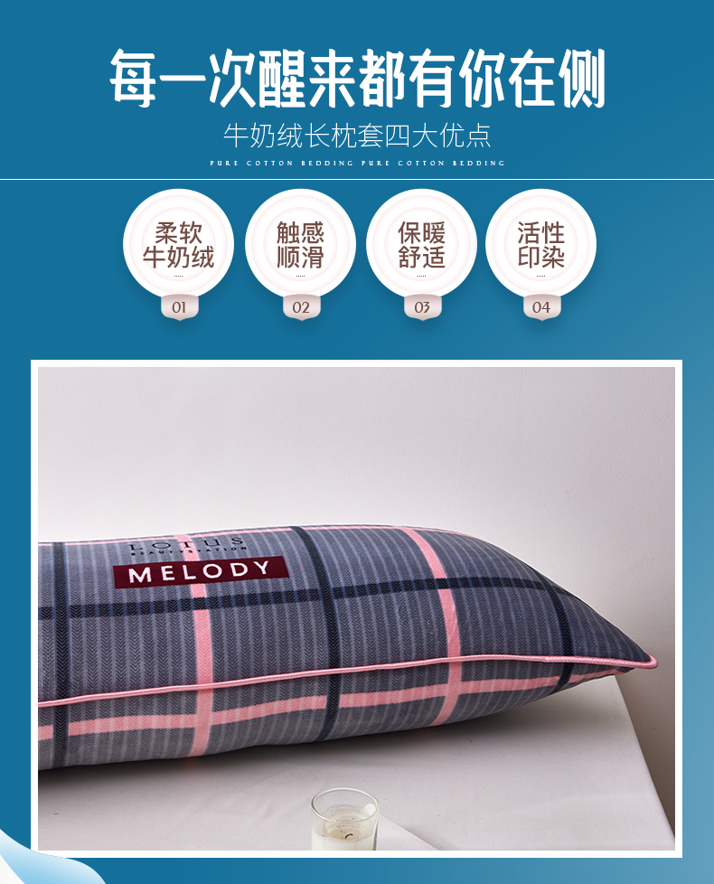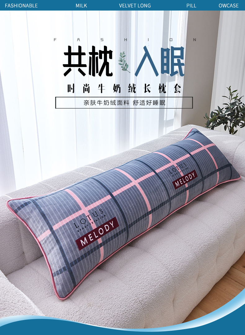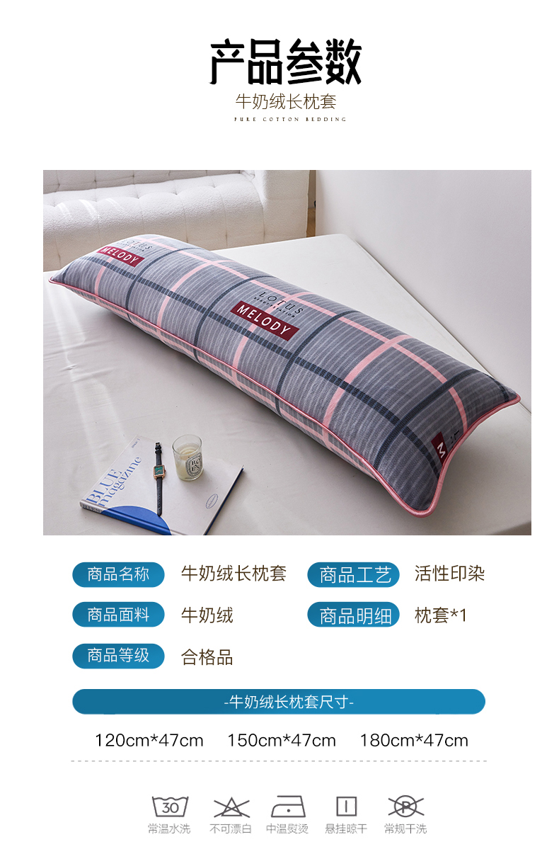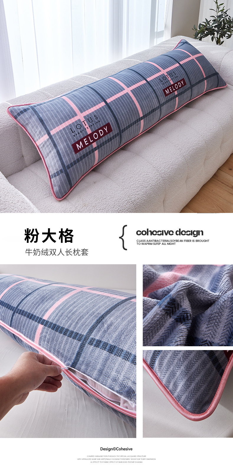 爱港家纺 2024新款牛奶绒,法莱绒,双人情侣长枕套 隔脏隔汗冬季保暖长枕套 粉大格
