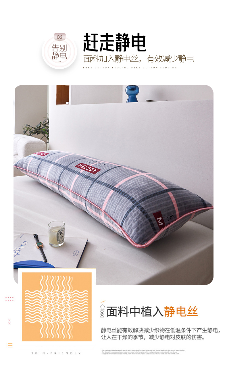 商品名称:爱港家纺 2024新款牛奶绒,法莱绒,双人情侣长枕套 隔脏隔汗冬季保暖长枕套 粉大格