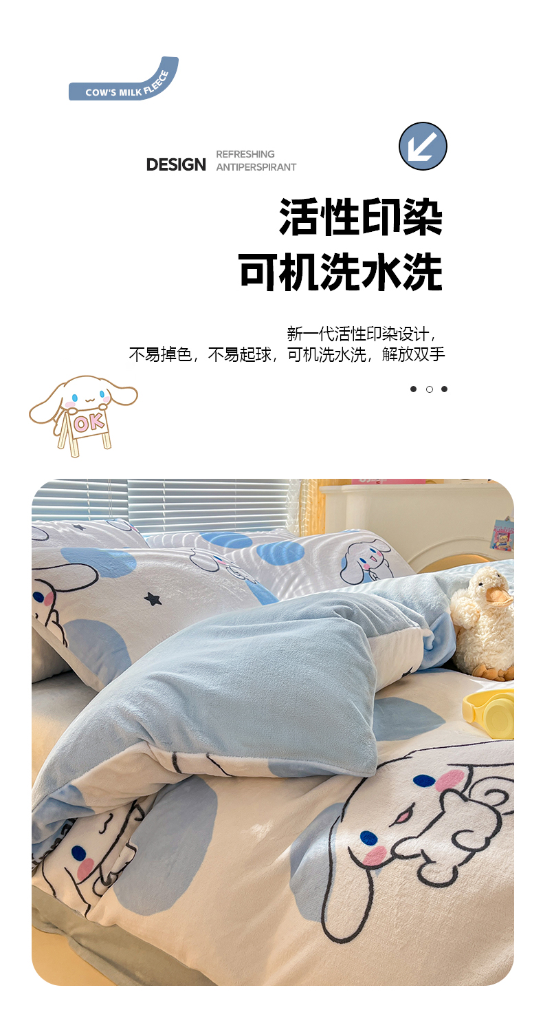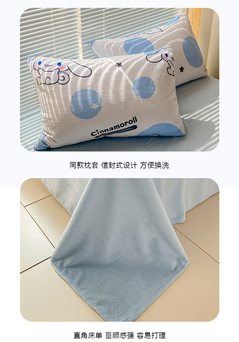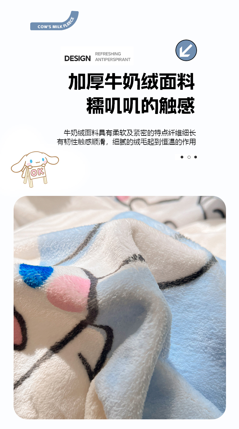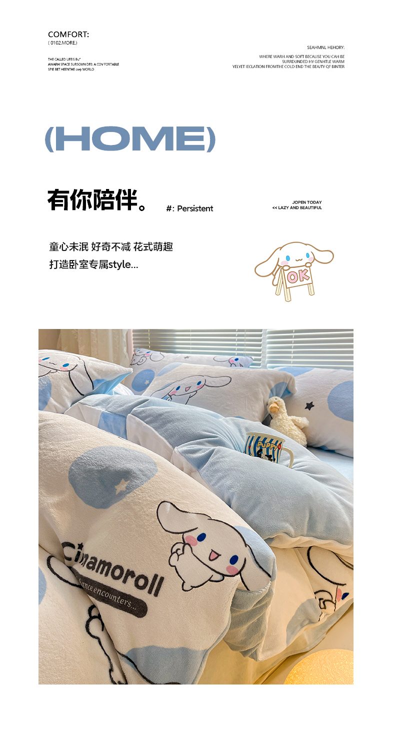 当前位置: 91家纺网 > 商品网购 > 床品套件 > 四件套 > 牛奶绒四件套 > 美澳家纺 2024新款200克三丽鸥系列卡通印花牛奶绒单被套三四件套 波点玉桂狗