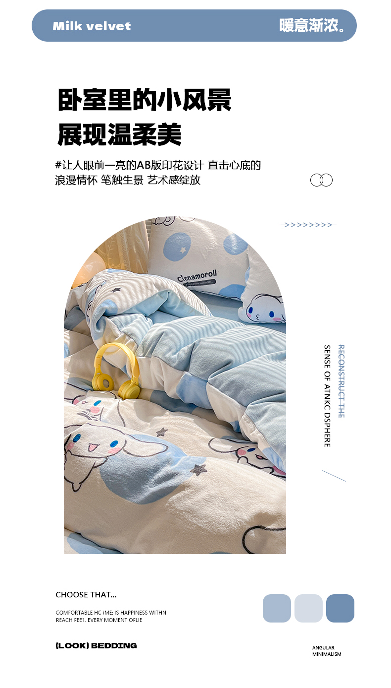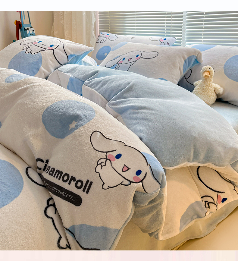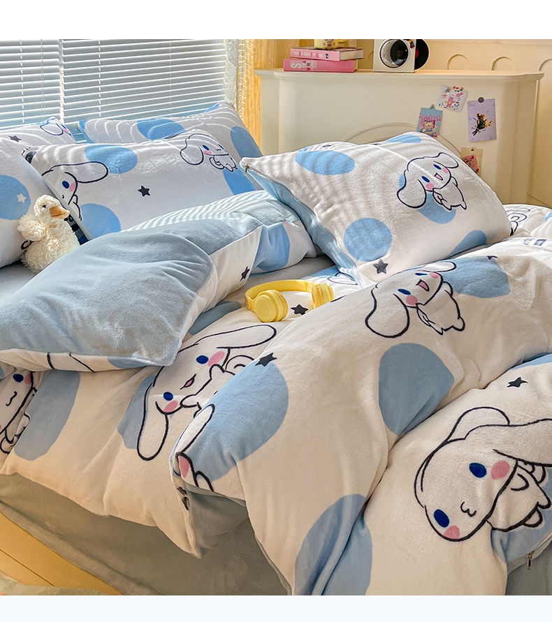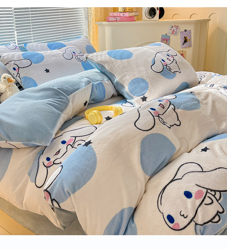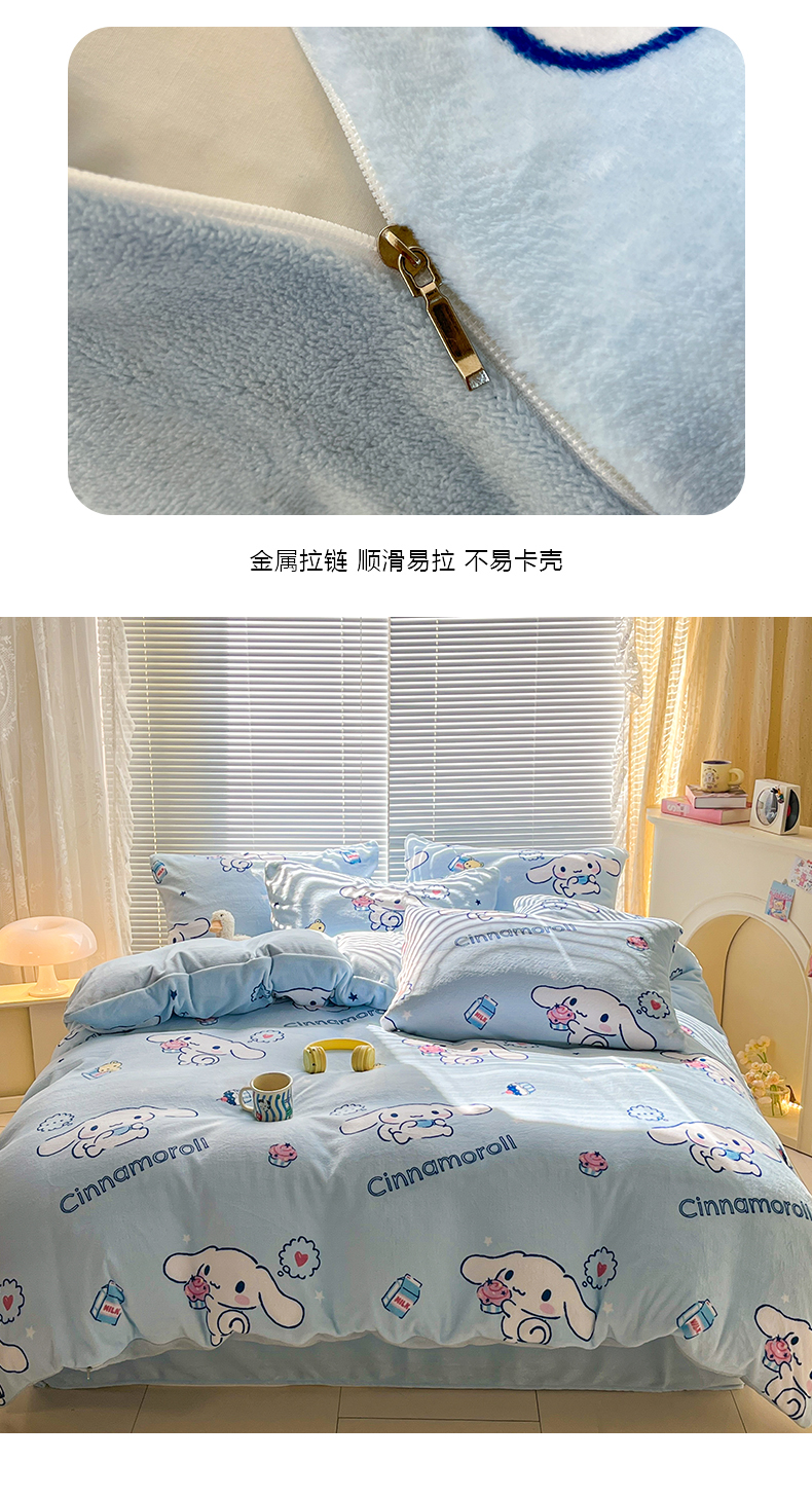 当前位置: 91家纺网 > 商品网购 > 床品套件 > 四件套 > 牛奶绒四件套 > 美澳家纺 2024新款200克三丽鸥系列卡通印花牛奶绒单被套三四件套 波点玉桂狗