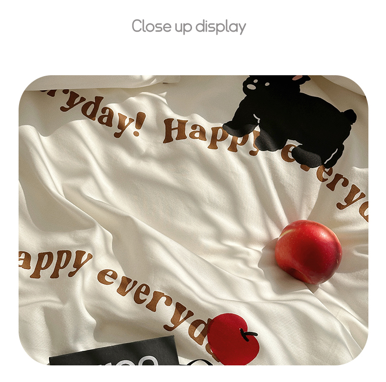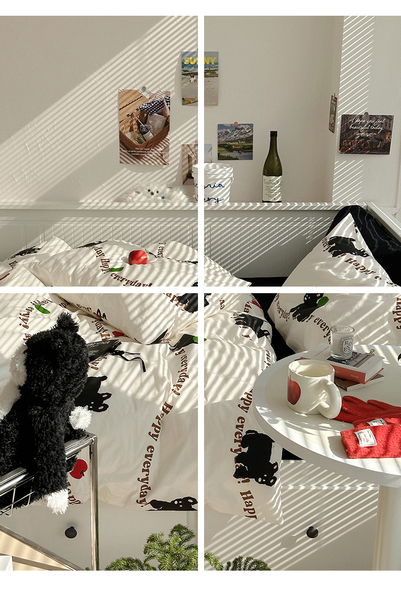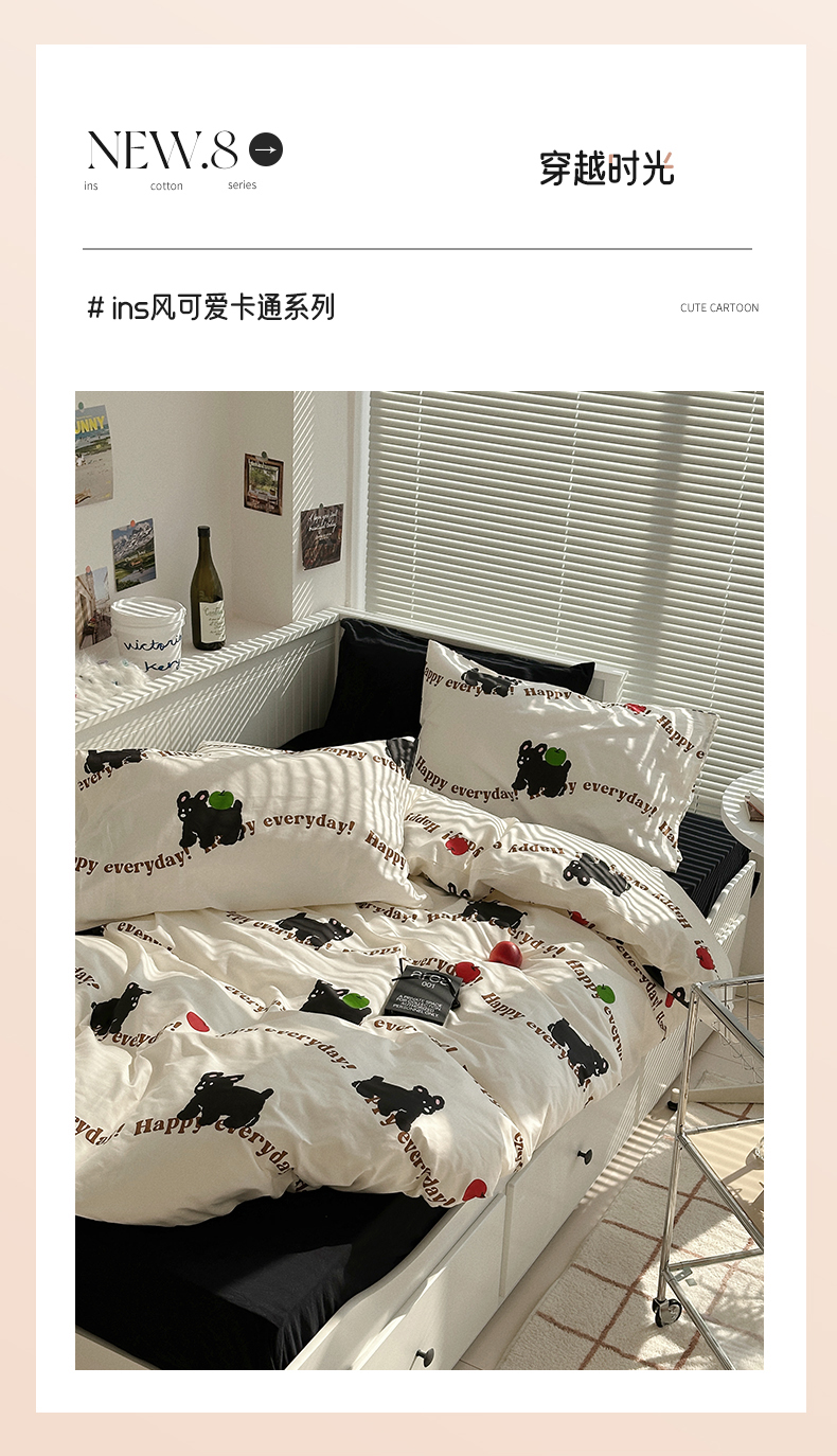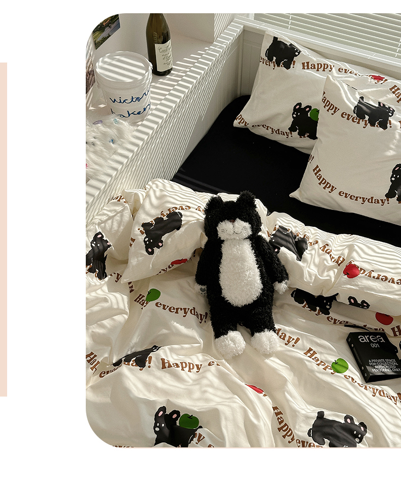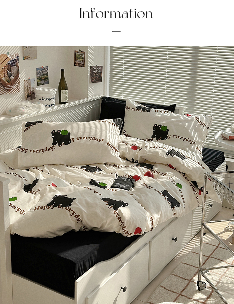 商品名称:尺素 2025年春夏新款全棉卡通四件套纯棉双人被套纯色床单床笠三件套儿童床上用品 纯爱小狗 黑
