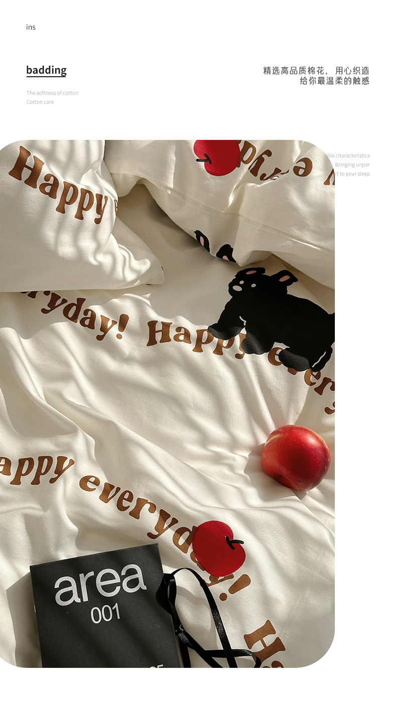 (总)尺素 全棉40支喷气13372韩国ins设计师四件套,花舞,篱落粉,篱落黄,落英,派对,童趣,涂鸦,小粉兔,雪地熊