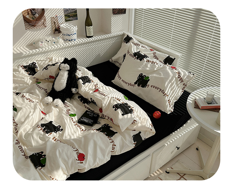 尺素 2025年春夏新款全棉卡通四件套纯棉双人被套纯色床单床笠三件套儿童床上用品 纯爱小狗 黑
