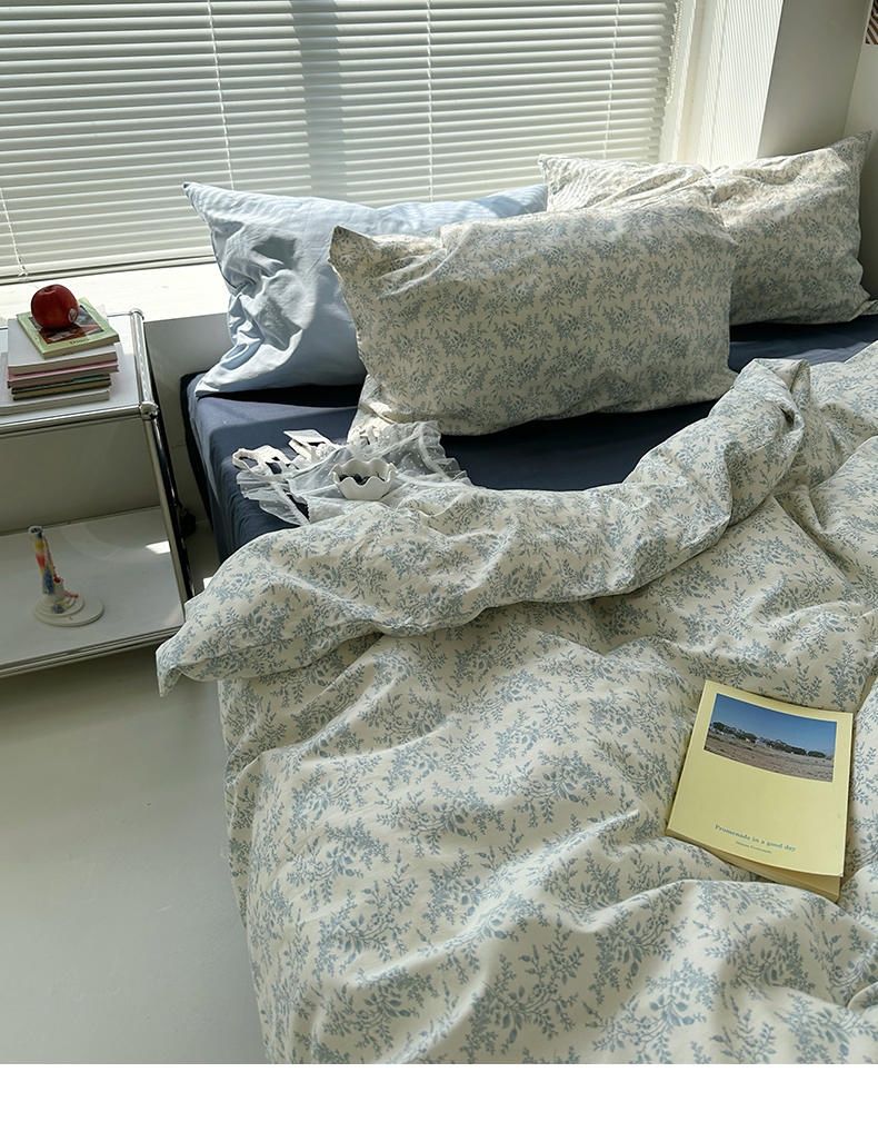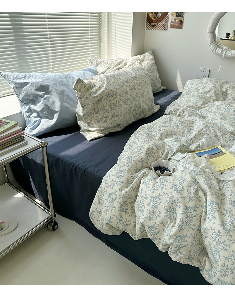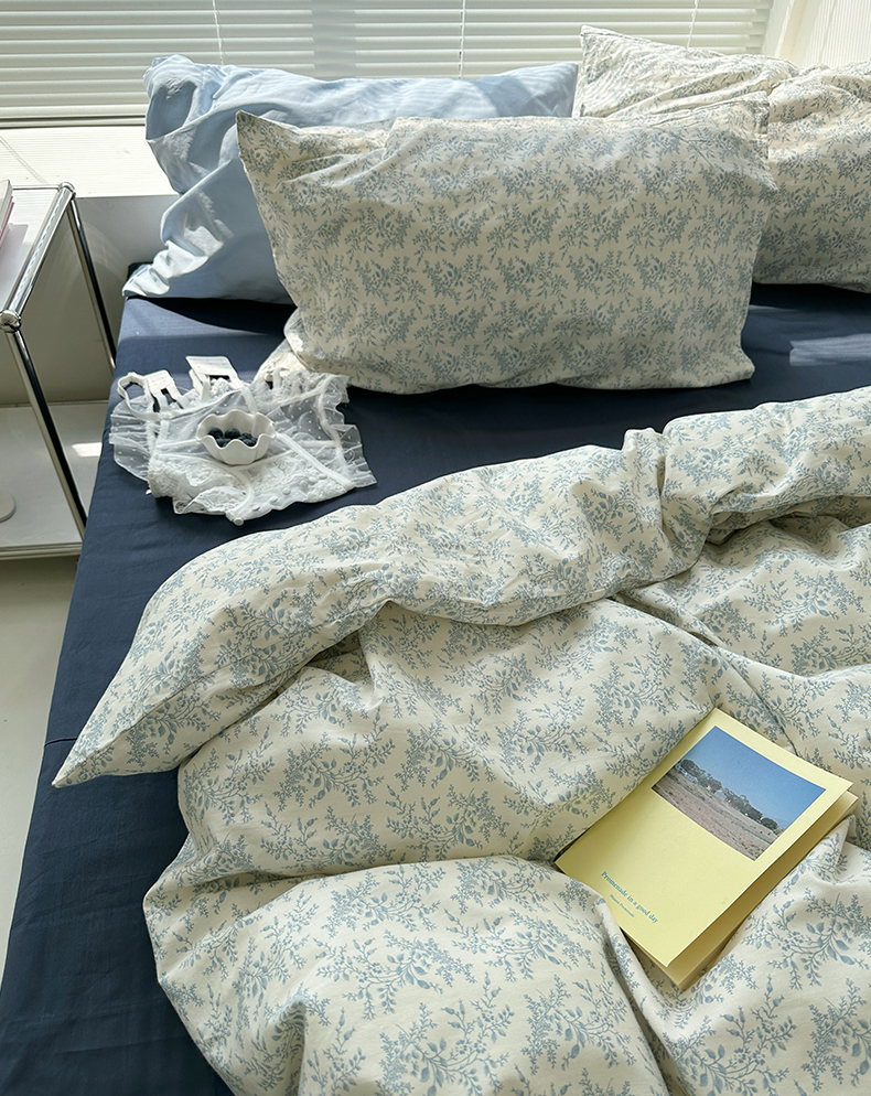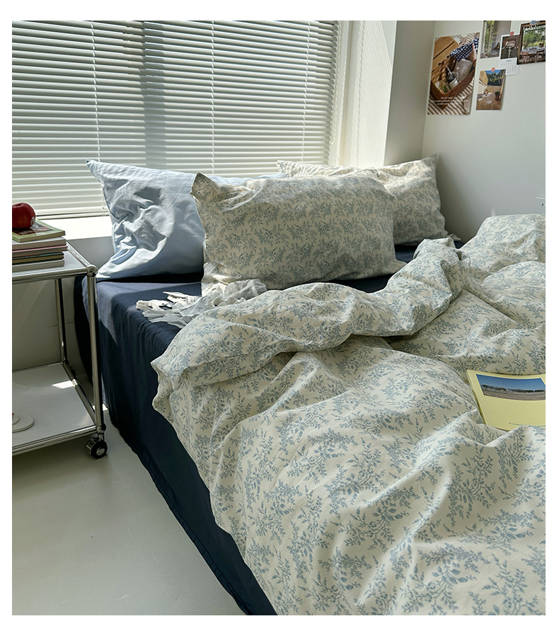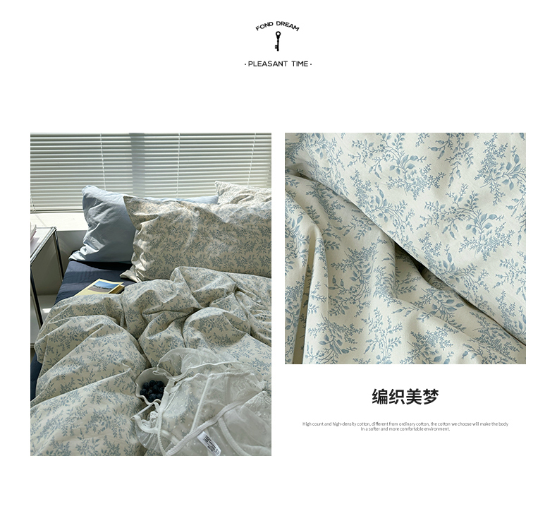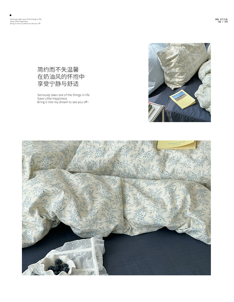 商品名称:尺素 2024韩国ins风少女粉被套纯棉卡通四件套小清新蝴蝶结被套240*250床单学生宿舍三件套 散文诗(藏青)
