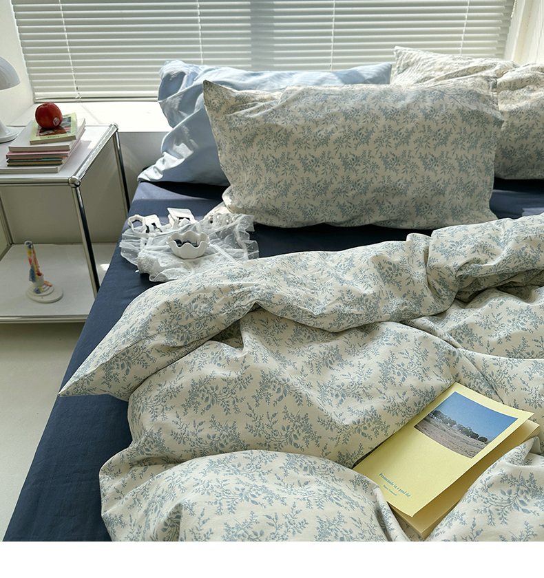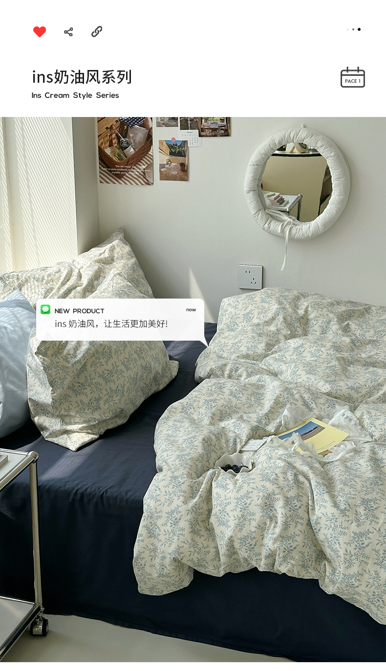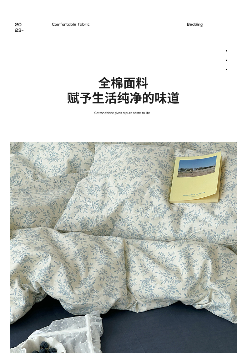 (总)尺素 2025新款田园小清新纯棉四件套出口韩国ins博主风全棉被套纯色加大床单1.8床笠印花枕套学生宿舍三件套,春不晚 桃粉,花似锦 奶白,紫鸢千夏紫