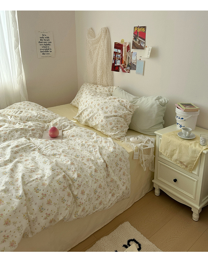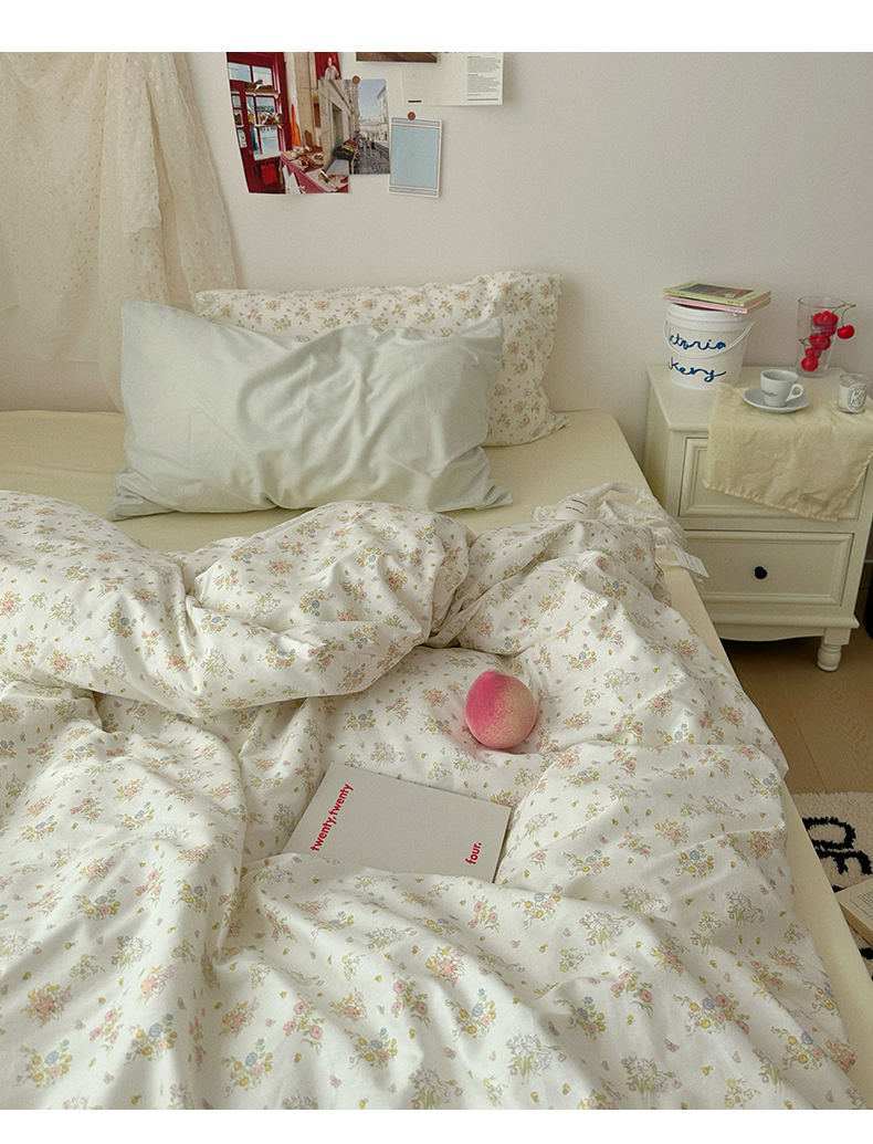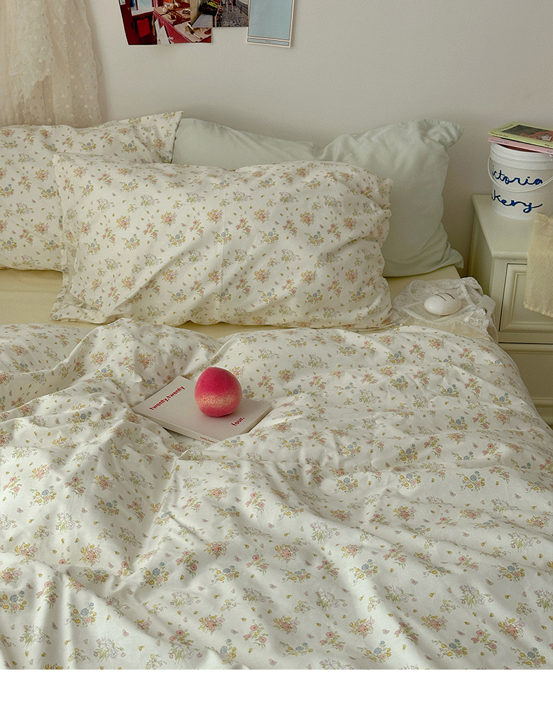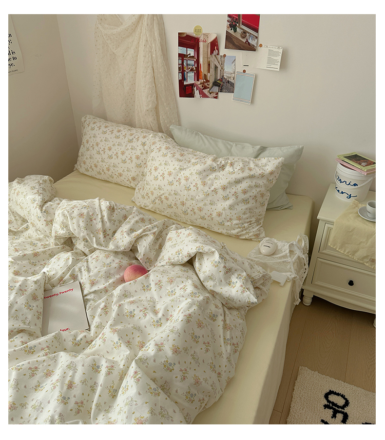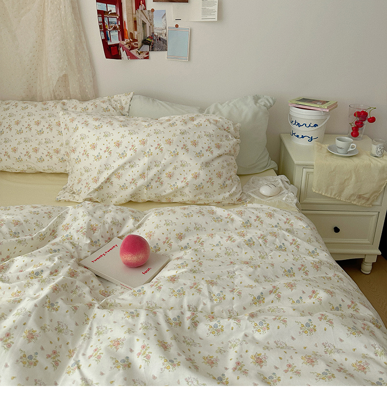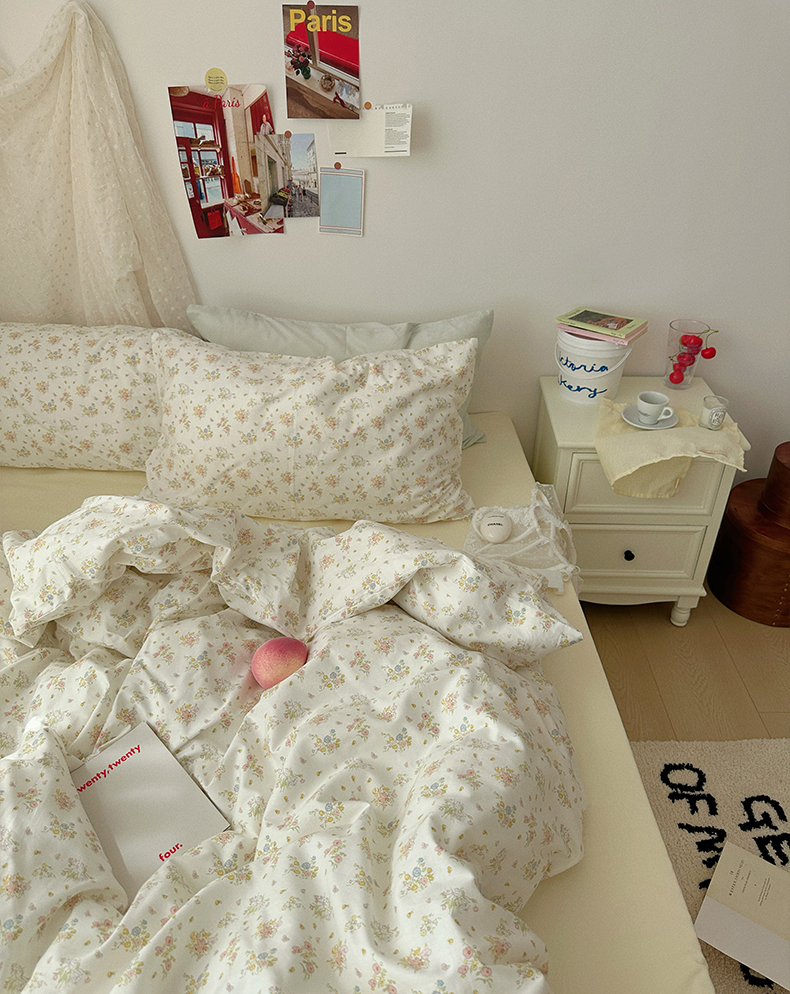 当前位置: 91家纺网 > 商品网购 > 床品套件 > 四件套 > 全棉普通四件套 > 尺素 2024新款韩国纯棉ins风小碎花四件套花卉田园被套纯色加大床单1.8床笠混搭风纯色印花枕套 春野(奶黄)