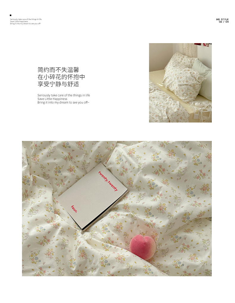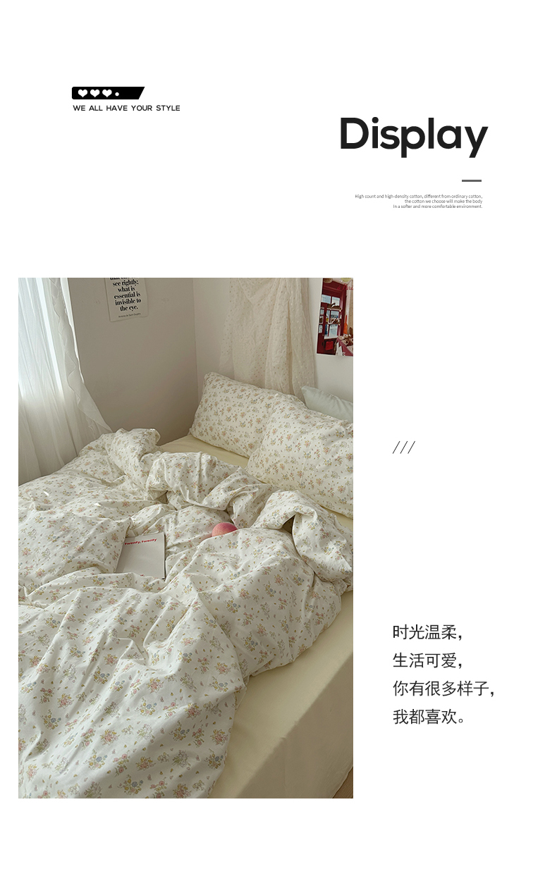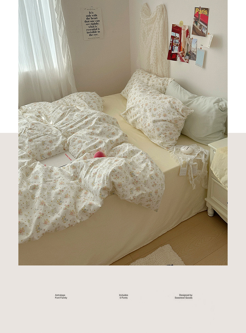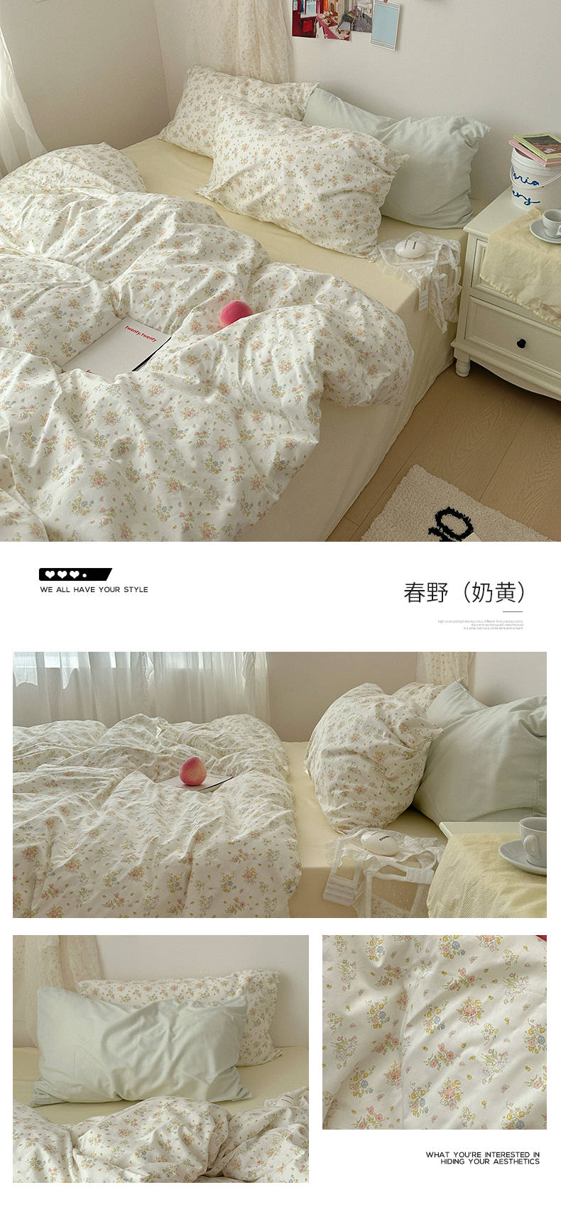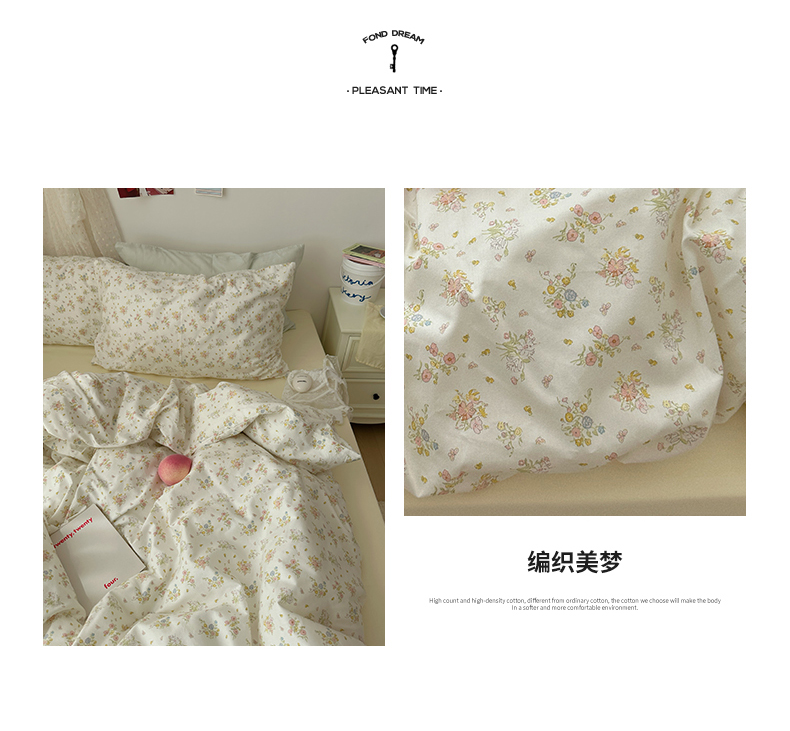 当前位置: 91家纺网 > 商品网购 > 床品套件 > 四件套 > 全棉普通四件套 > 尺素 2024新款韩国纯棉ins风小碎花四件套花卉田园被套纯色加大床单1.8床笠混搭风纯色印花枕套 春野(奶黄)
