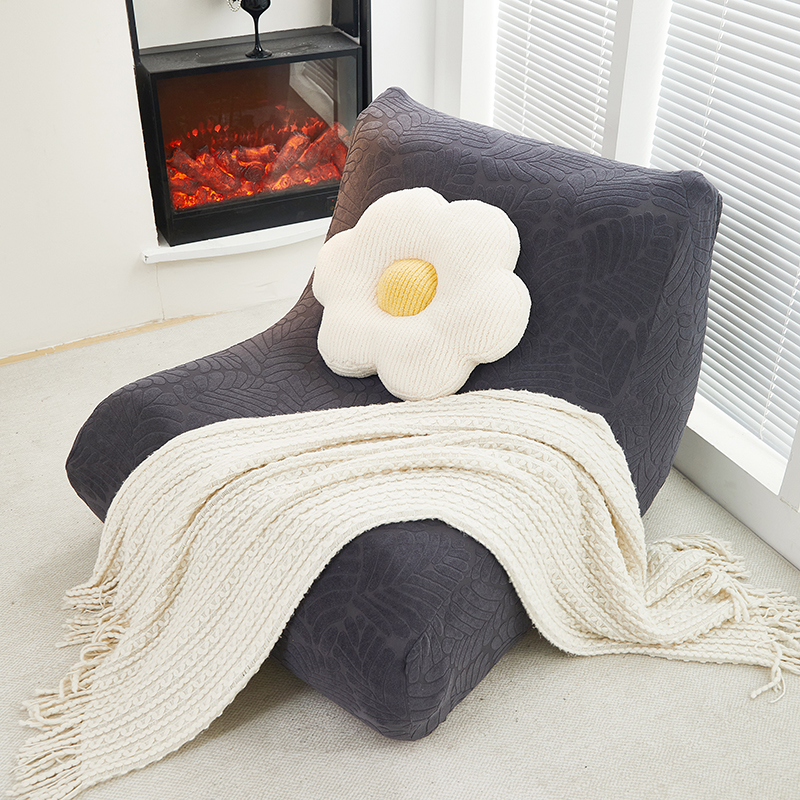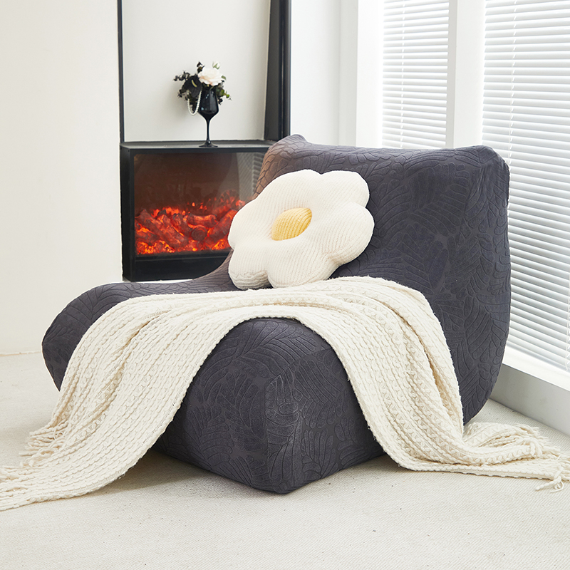 商品名称:共鸣沙发套 2024新款臻品提花系列懒人沙发套(织叶花系) 织叶碳灰